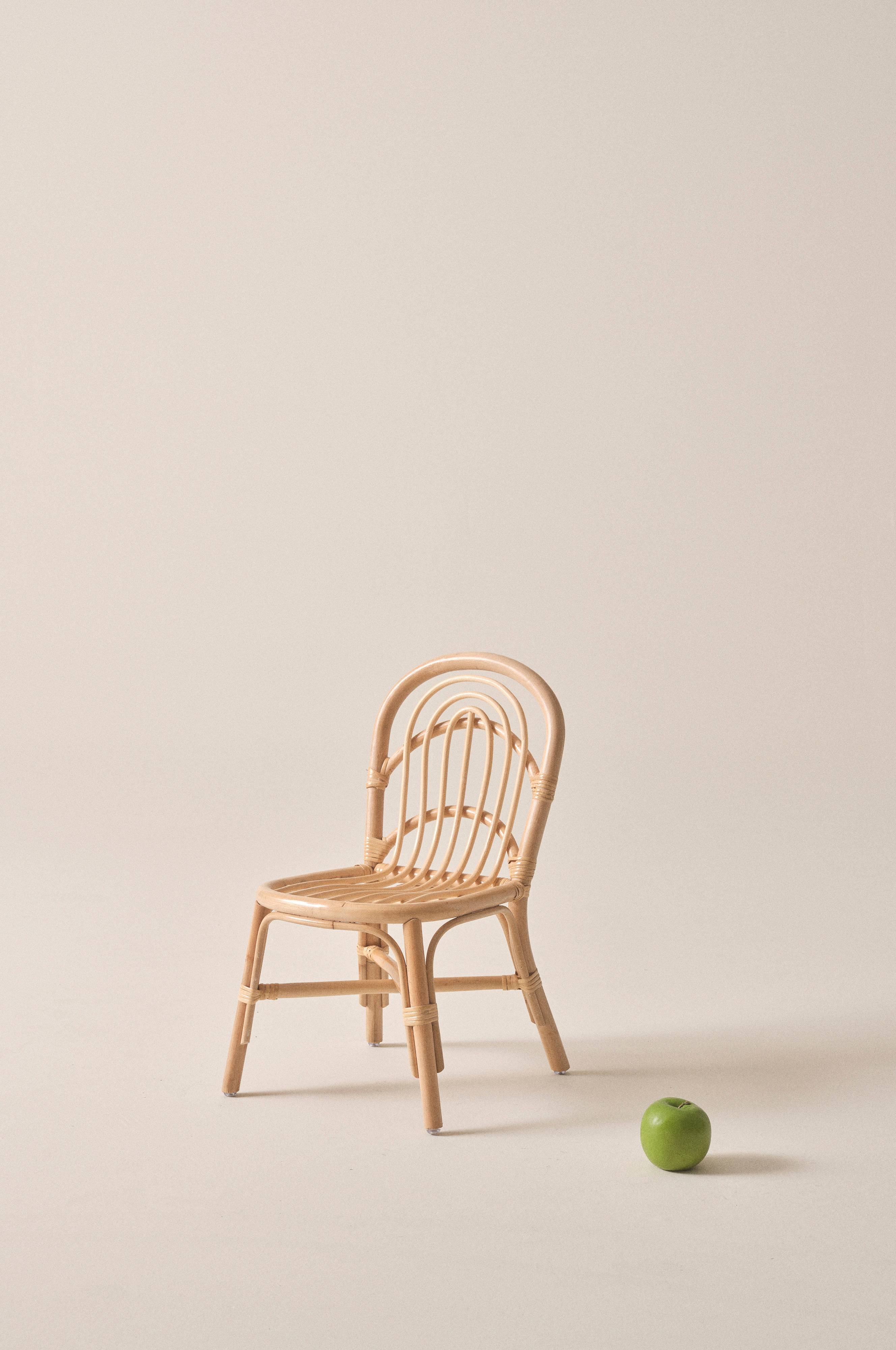 Håndlaget barnestol i rotting med vannbasert lakk som gir en naturlig overflate og farge, slik at den fine rottingen fremheves. Stolen er i fin modell, og ser ut som en ordentlig stol i miniformat. Det er jo perfekt for små barn å få sitte på en stol som passer i størrelse. Håndverket gjør hver stol unik.
