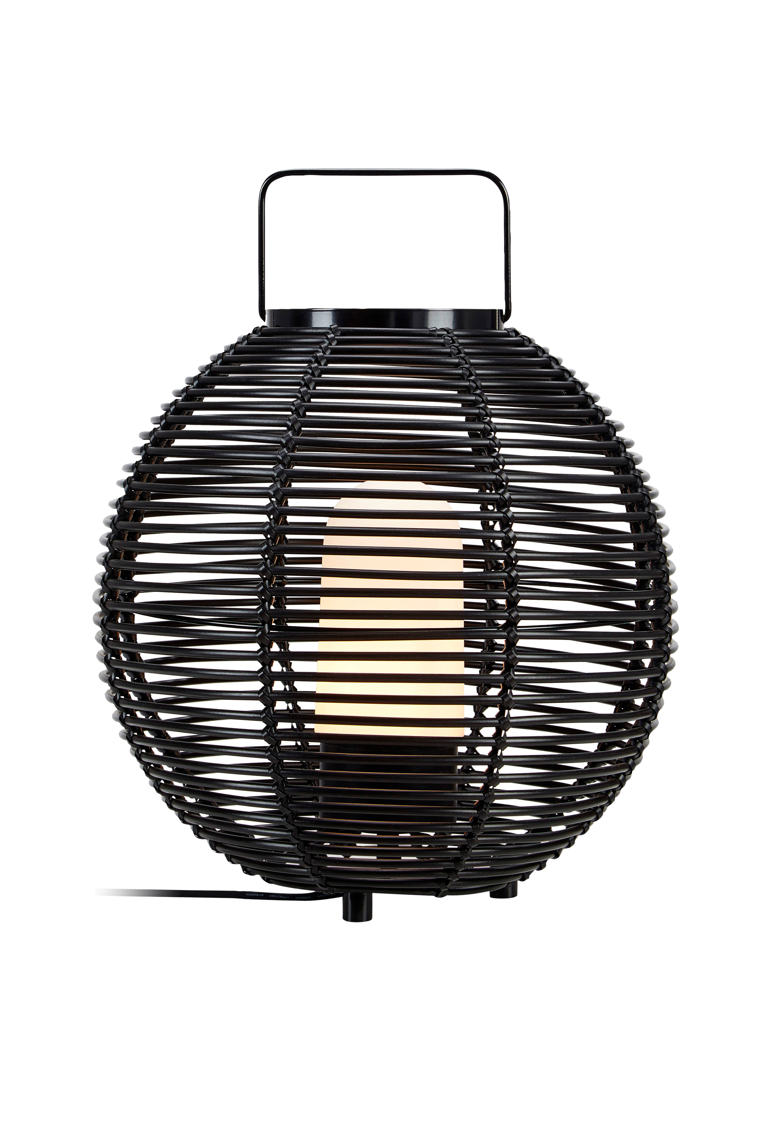 Allsidig bordlampe for utendørs bruk med rund, svart skjerm. Passer perfekt til å dekorere terrassen eller balkongen med. Lampen har et frostet glassdeksel over lyspæren, og et praktisk håndtak for enkel forflytning. Svart gummiledning, ledningslengde 5 meter.