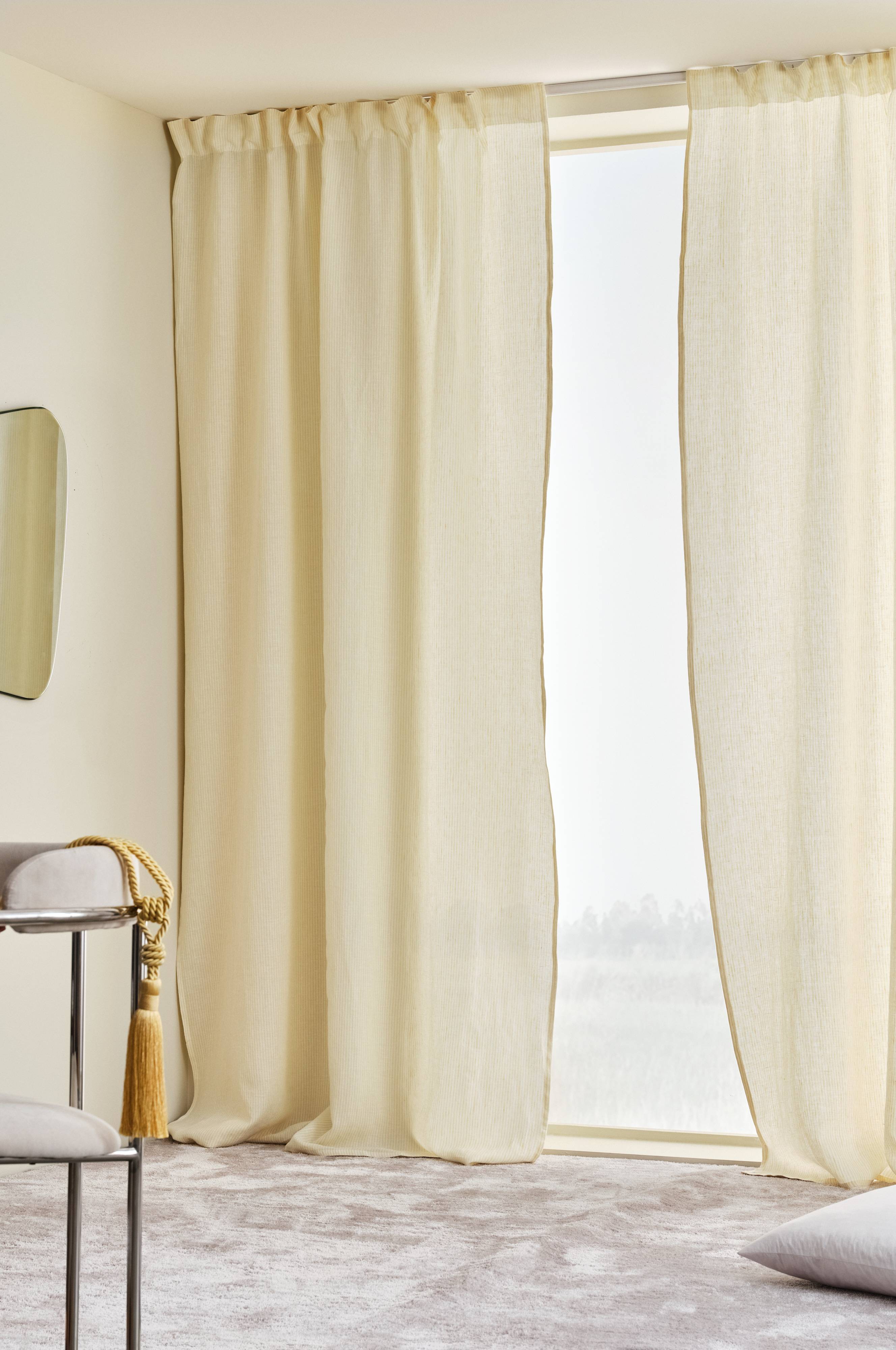 ALINA gardiner i lin gir hjemmet ditt et snev av eleganse og enkelhet. Disse gardinene er laget av garnfarget lin og har klassiske striper som gir dybde og karakter til ethvert rom. De er tilgjengelige i to lengder og passer sømløst inn i en rekke interiørstiler, fra moderne minimalistisk til koselig rustikk. Opplev lyset filtrere naturlig samtidig som du opprettholder personvernet og skaper en rolig og innbydende atmosfære i hjemmet ditt.