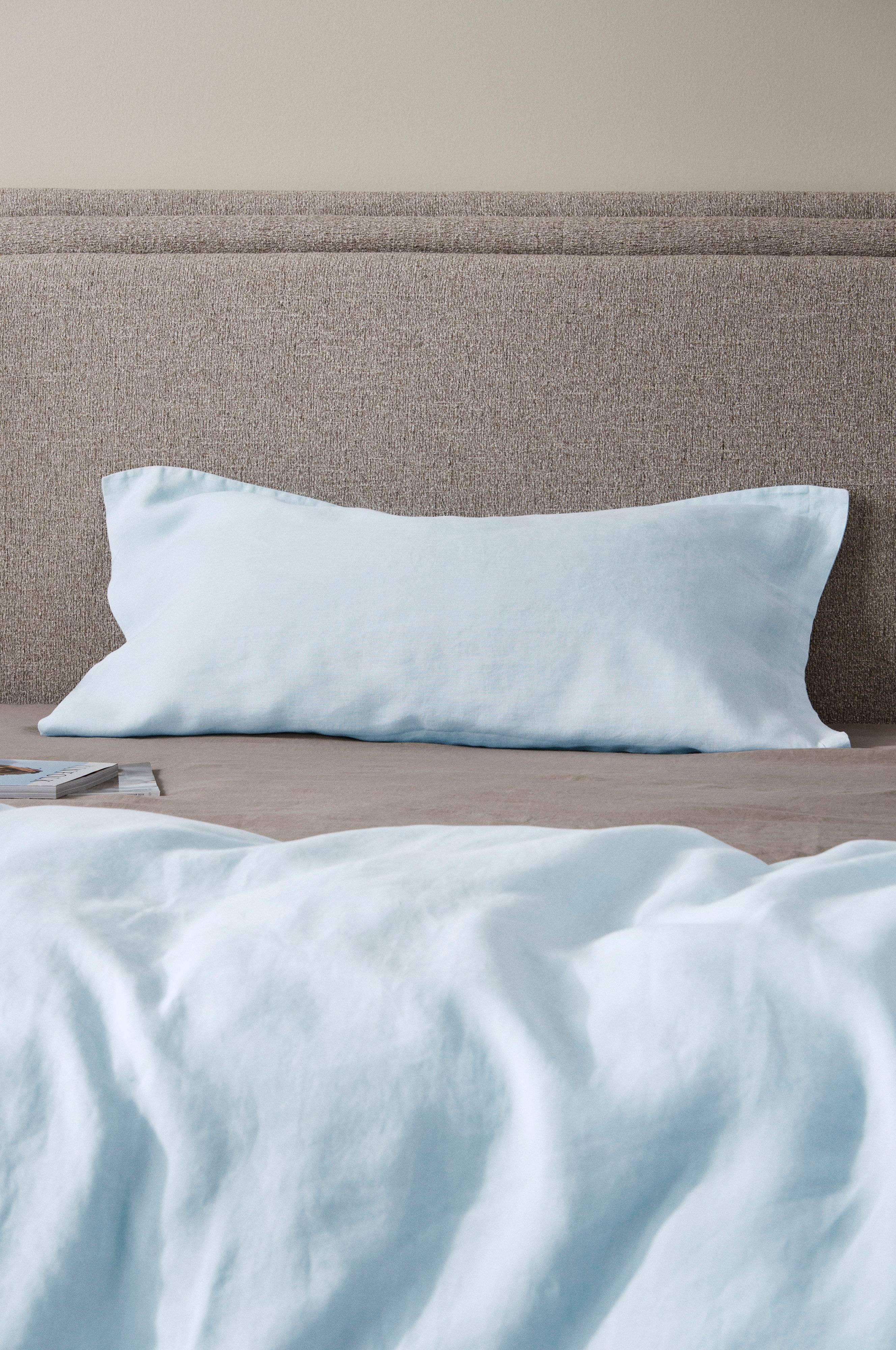 1-pk putevar av plaggvasket lin. Det er lett å elske lin, dets egenskaper, følelse og struktur. Lin varmer når det er kaldt, og er sval å sove i når det er varmt. Trådtetthet på 110 tc. (Trådtettheten forteller om antallet tråder, thread counts, pr. kvadrattomme i et stoff. Jo høyere trådtetthet, desto høyere kvalitet. Unntaket er lin som ofte veves løsere for å få den riktige følelsen.)
