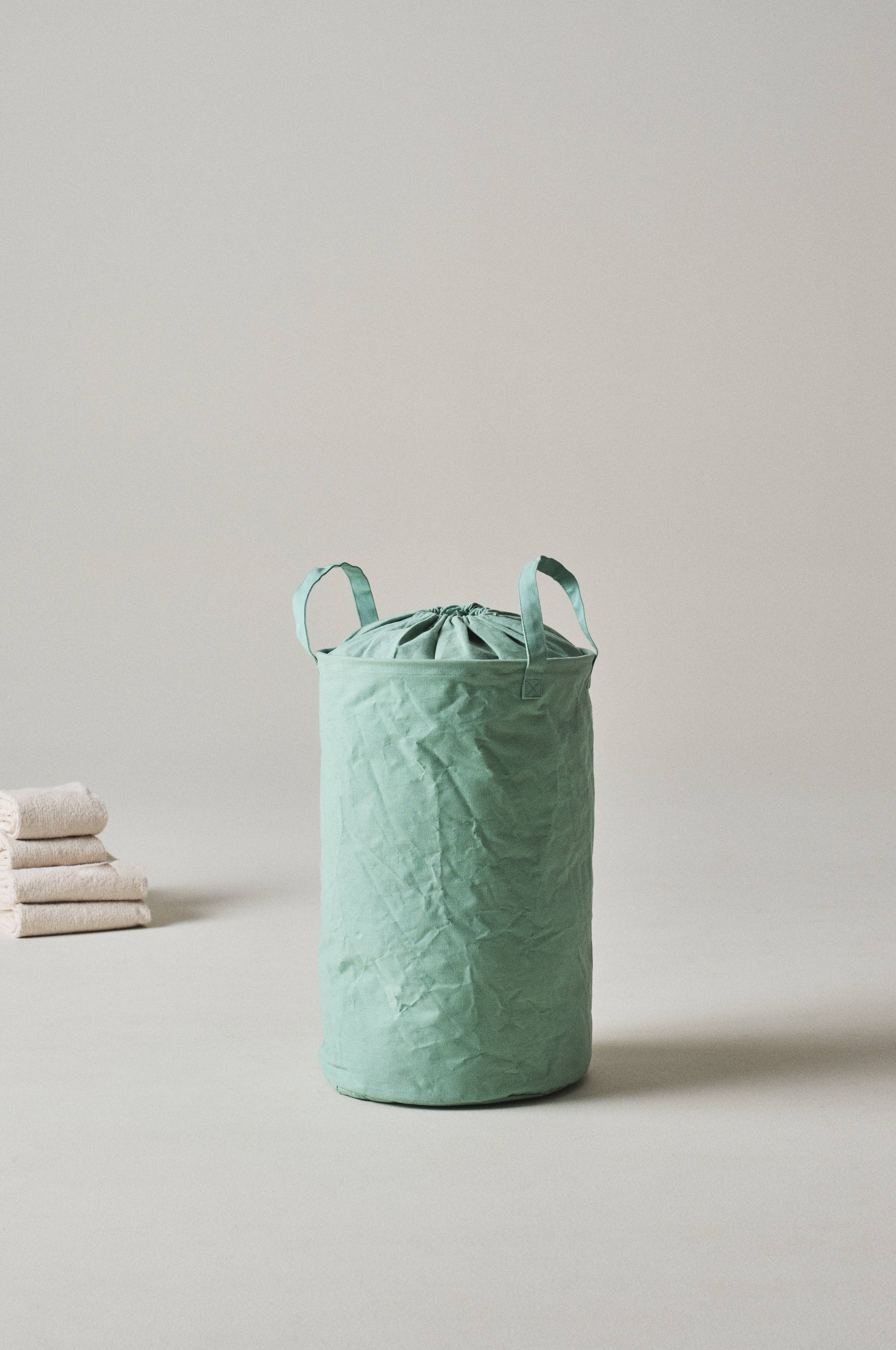 Vevd, ensfarget skittentøyskurv i bomull og polypropylen. Skittentøykurven har håndtak på begge sider og snøring øverst. Oppbevar skittentøyet ditt i en flott og stilren skittentøyskurv.
