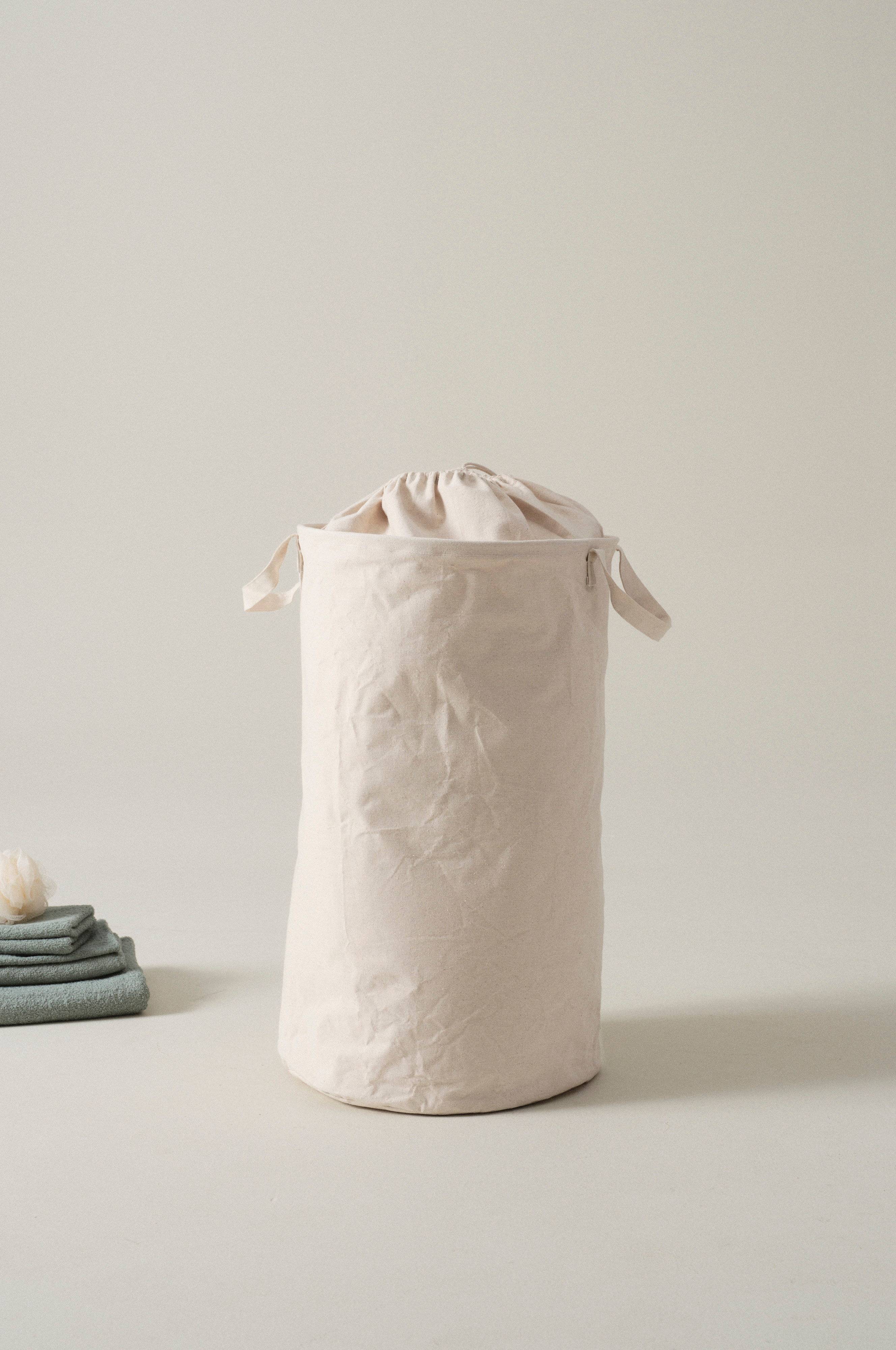 Vevd, ensfarget skittentøyskurv i bomull og polypropylen. Klesvaskkurven har håndtak på begge sider og en snor for lukking. Oppbevar tøyet ditt i en ryddig og stilig skittentøyskurv.