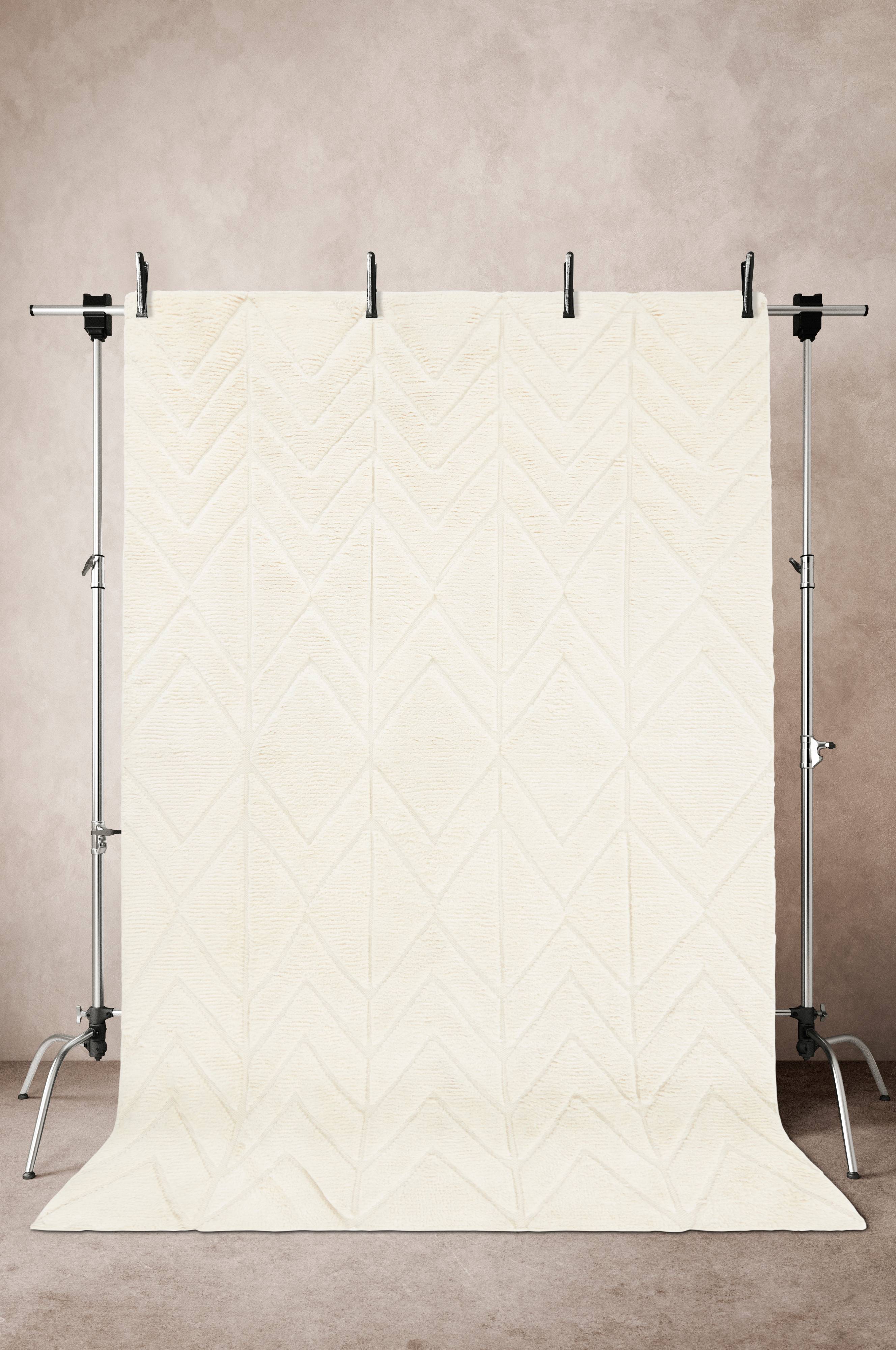 Håndknyttet teppe av ull med en liten innblanding av polyester og bomull. Teppet har myk, herlig lugg og sikksakkmønsteret skapes ved at luggen er klippet i ulike høyder. Mønsteret gir teppet et herlig liv uten å ta alt for mye fokus. ANIKA er et koselig teppe å plassere under sofaen i stua, både pent og behagelig. Det fine håndverket gjør hvert teppe unikt. Lugghøyde 2,2 cm. Tykkelse 3 cm. 2500 g/m².