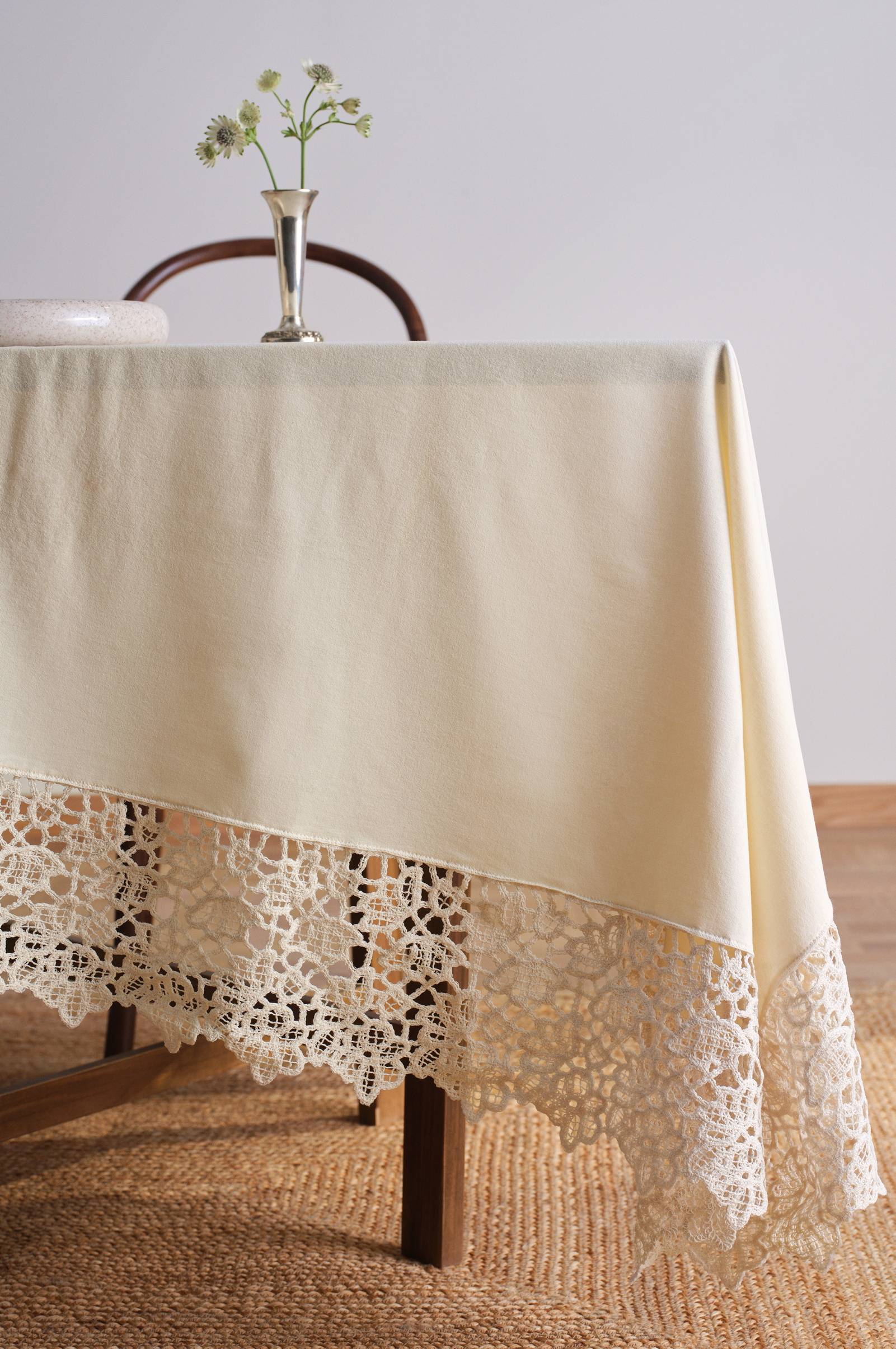 Antoinette-duken tilfører eleganse til enhver borddekking. Duken er vakkert utformet med intrikate blondedetaljer som gir et tidløst uttrykk til din samling av bordtekstiler. Duken Antoinette passer perfekt til både daglige måltider og spesielle anledninger, og den klassiske sjarmen gjør matopplevelsen din enda bedre. Ideell for deg som ønsker å komplettere borddekkingen med et snev av raffinement og eleganse.