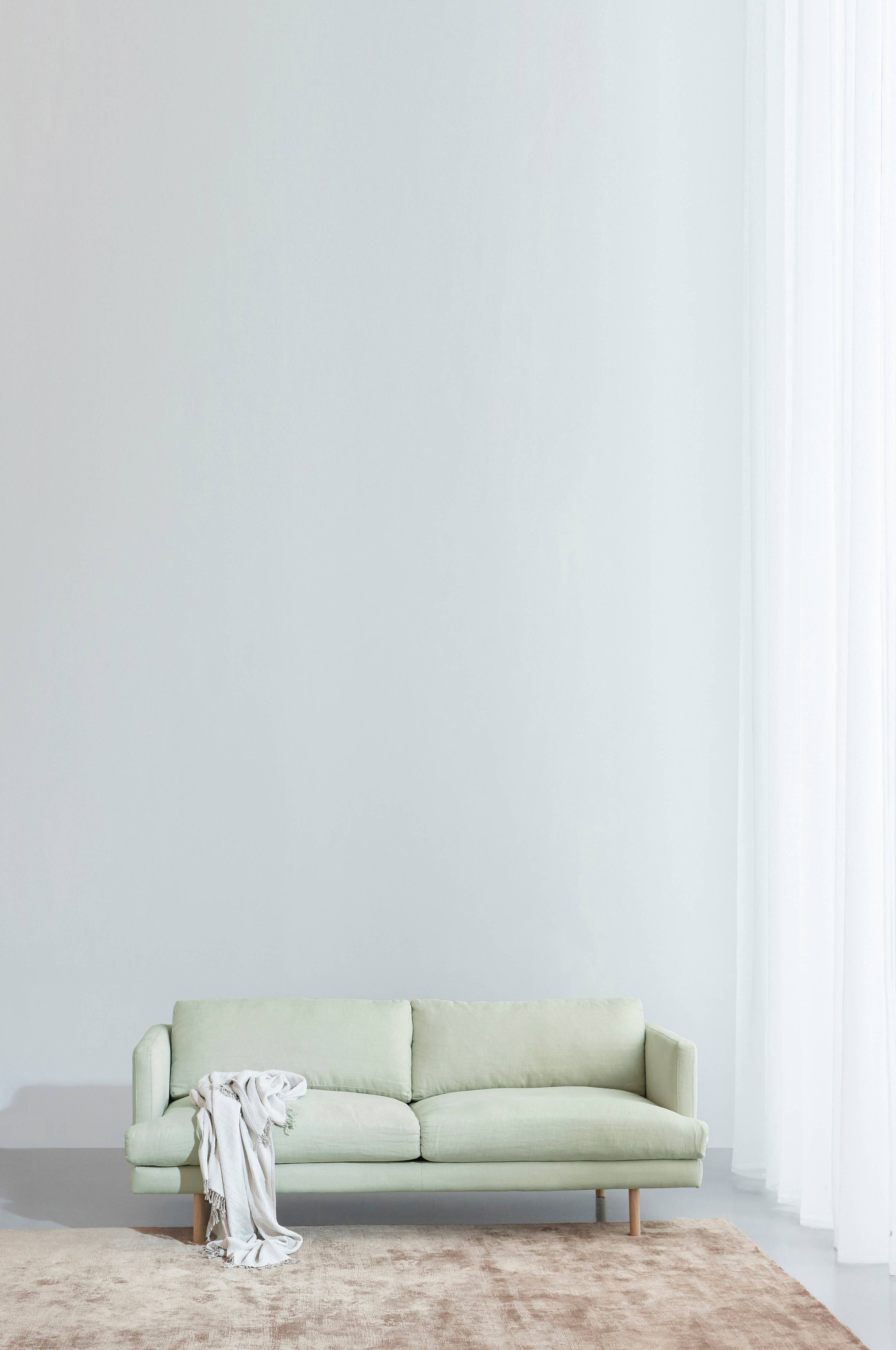 ANTWERPEN 3-seter sofa har et pent stoff av 100% lin. De konkave bena er av hvitsåpet eik. Stabil stamme av furutre og kryssfiner med god sittekomfort takket være sin fantastiske oppbygging av kaldskum, sikksakkfjæring, strikkbånd samt det herlige stoppet av fjær og ballfiber. Ryggputene har stopp av fjær og ballfiber som gjør de komfortable å lene seg mot. Trekket på sitte- og ryggputer er avtagbart og vaskbart.