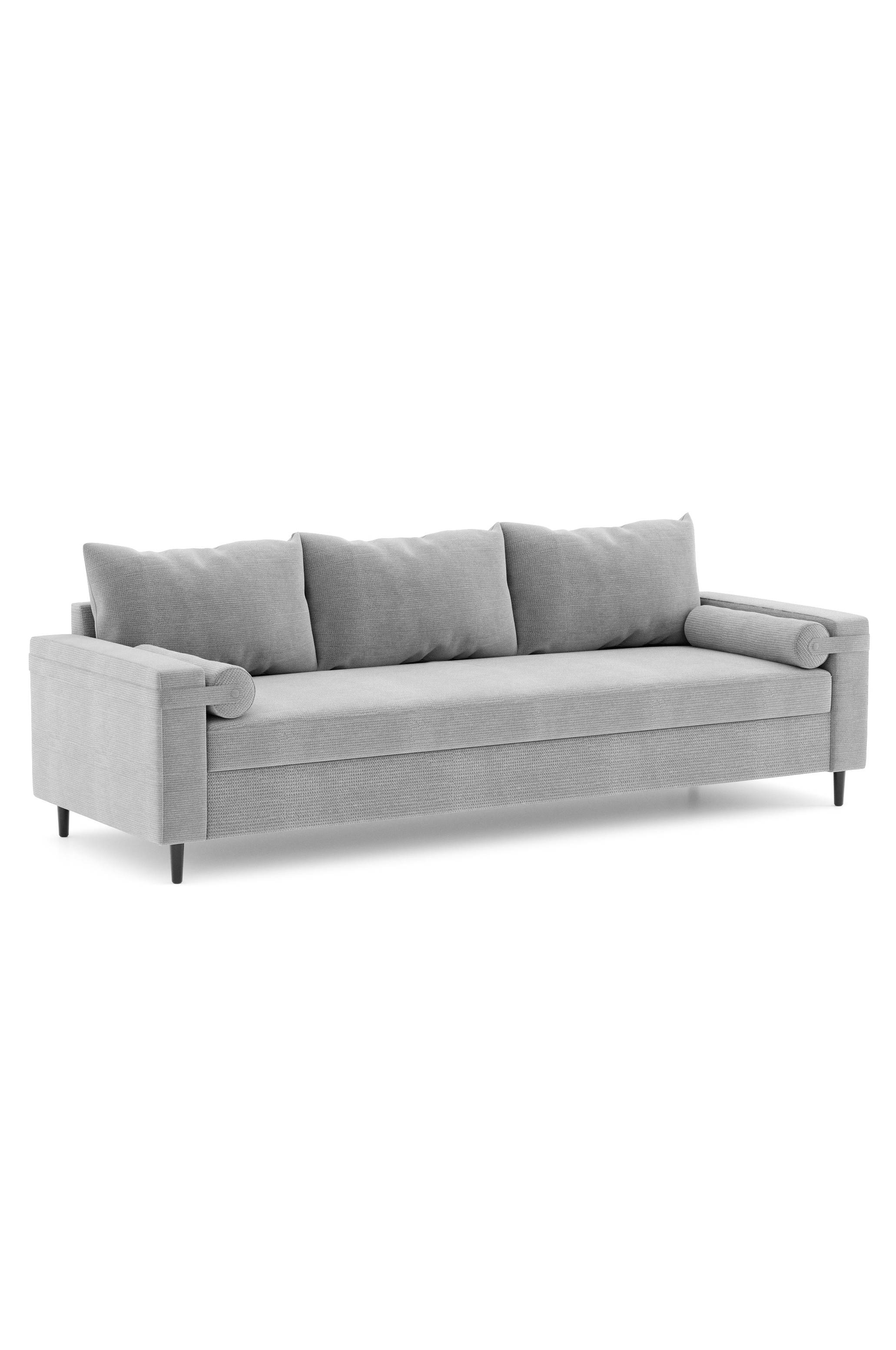 ARCELLA er en pen og komfortabel 3-seters sofa som du enkelt og raskt gjør om til en romslig seng. Sovesofaen er håndlaget, og har fine detaljer i utformingen. Den er rett i stilen med store myke ryggputer som myker opp. Disse er løse og vendbare. De kjegleformede bena tilfører attityde. Sovesofa er valget for deg som bor på litt mindre flate og likevel vil ha gjesteseng, eller bor såpass smått at du vil ha rom både for god nattesøvn og hyggelig sofakos. Trekket på sofaen er ikke avtagbart. Ryggputene har avtagbart, vaskbart trekk.