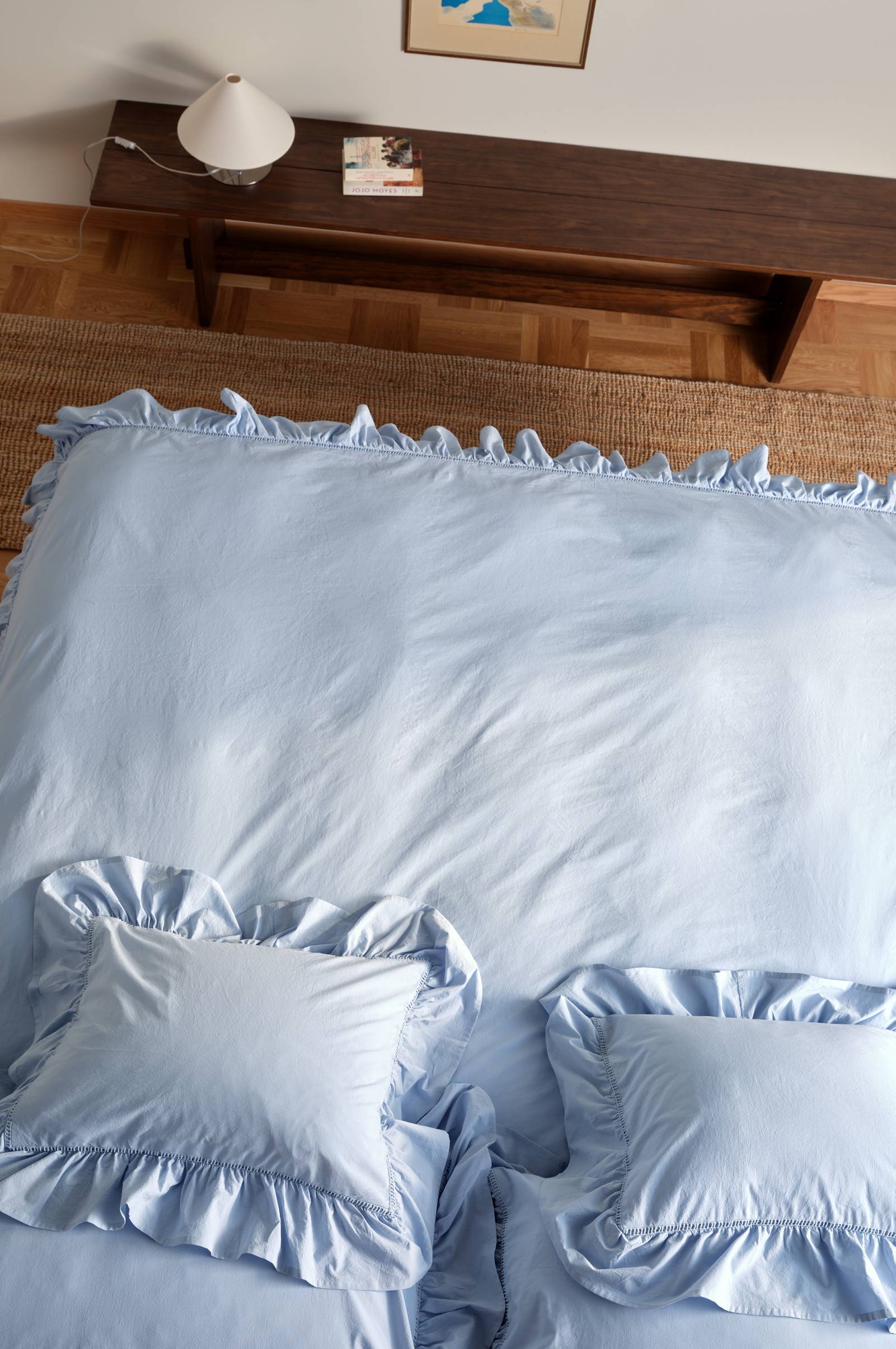 Bardot dobbelsengsett gir soverommet ditt en elegant design. Dette dynetrekket er laget for komfort og gir en koselig og innbydende følelse i soveområdet ditt. Det er perfekt tilpasset en dobbeltseng og sørger for et pent og ryddig utseende. Bardot-settet inkluderer matchende putetrekk, noe som gjør det til et komplett sengetøyvalg som kombinerer skjønnhet og praktisk bruk i hjemmet ditt.