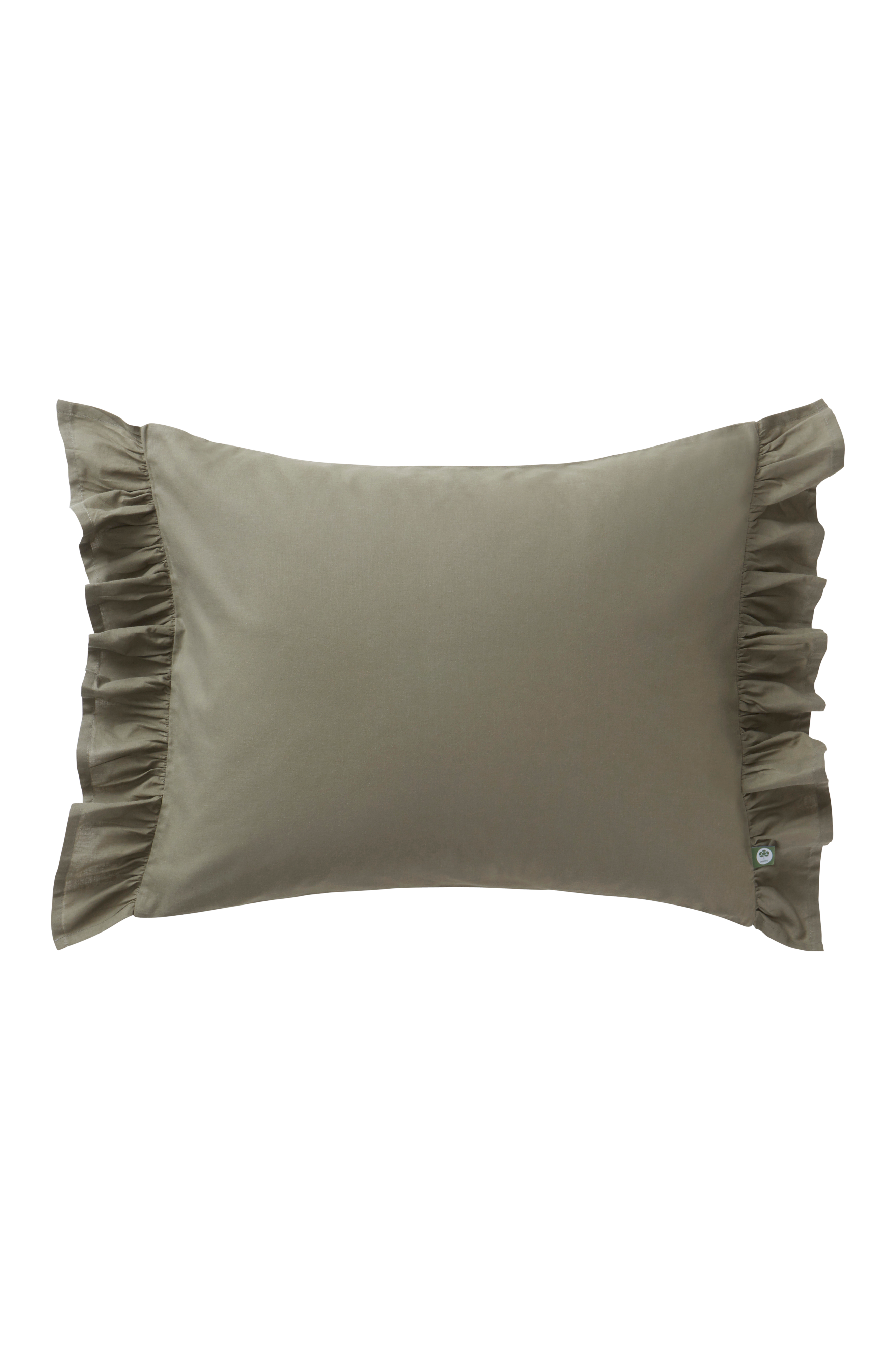 1-pakning med putevar i økologisk bomull med dekorativ volangkant. Sengetøy i bomull er luftig og mykt mot kroppen.