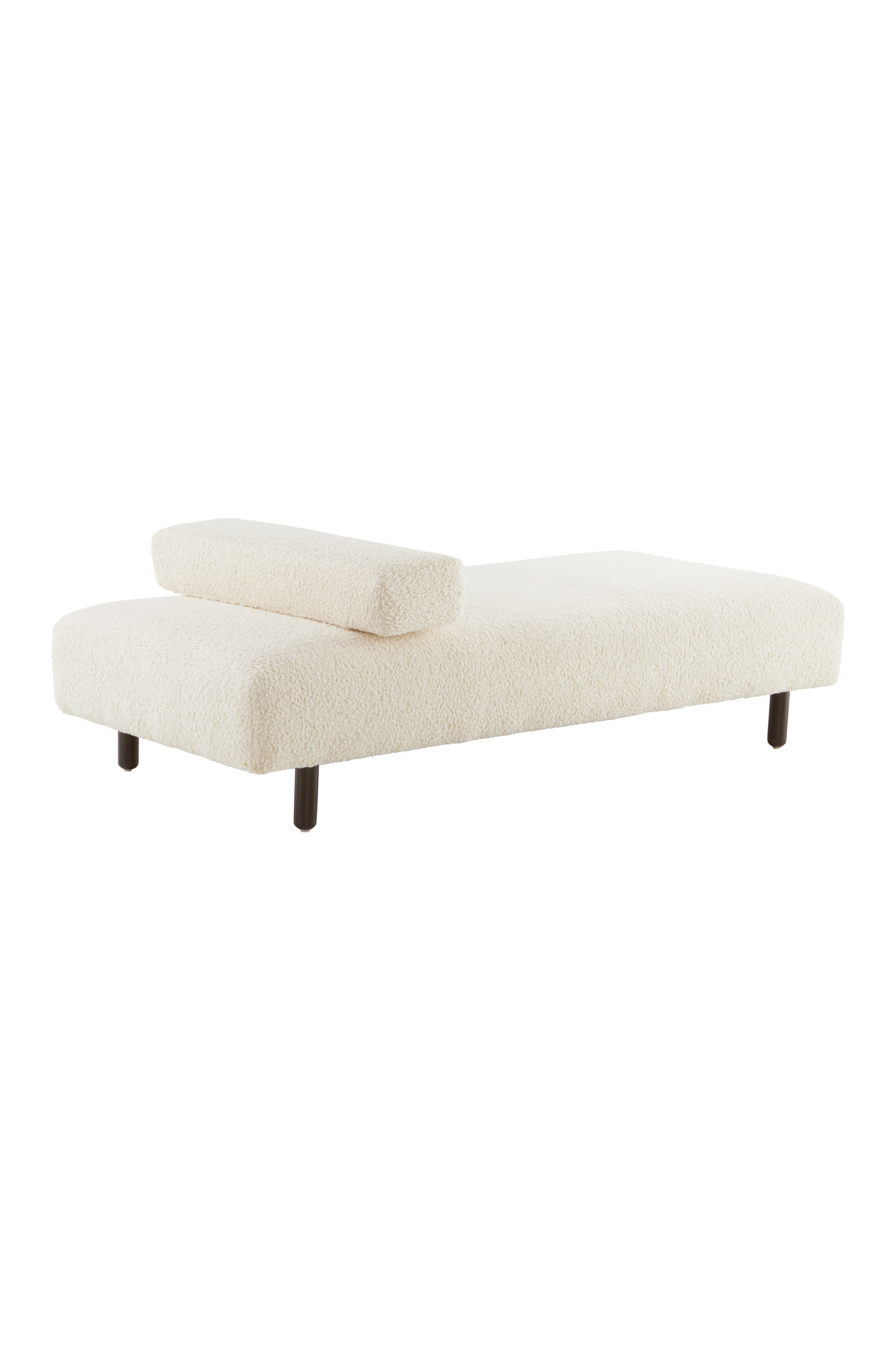 BOLD er en serie med trekk i mykt teddystoff som matcher de runde og sjenerøst fyldige formene. De rette, runde trebena er av svartbeiset FSC-merket furu. Teddytrekket, som minner om saueskinn, er produsert av 100% polyester med slitestyrke på 40 000 Martindale. Dagsengen har en stabil stamme av FSC-merket furu og FSC-merket kryssfiner. Det er myk og komfortabel, både å ligge og sitte på, da den er oppbygd av nozagfjær og strikkbånd med en herlig topp av kaldskum av polyuretan. Noe montering kreves. Monteringsanvisning medfølger.
