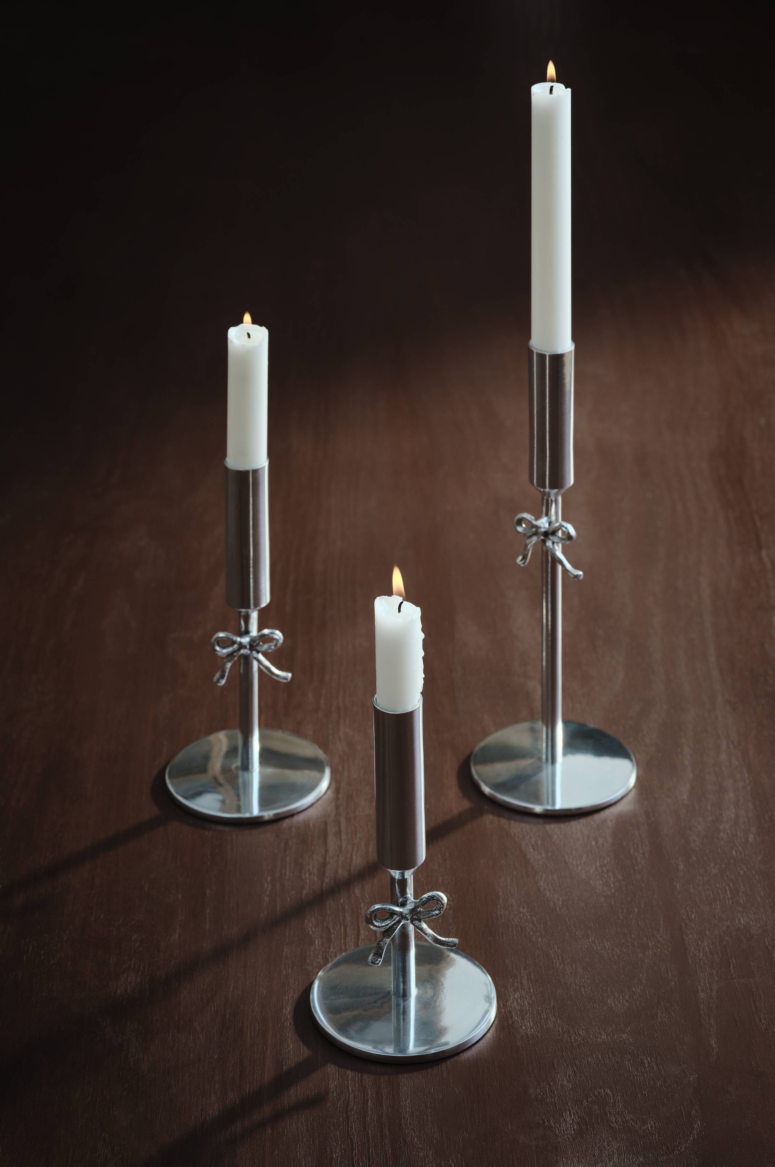BOWY lysestakesett tilfører sjarm med sin elegante metalldesign og dekorative sløyfe. Dette settet med tre lysestaker er perfekt for å skape en elegant atmosfære og fremhever ethvert interiør med sin tidløse stil. Perfekt for å gi interiøret ditt et snev av eleganse.