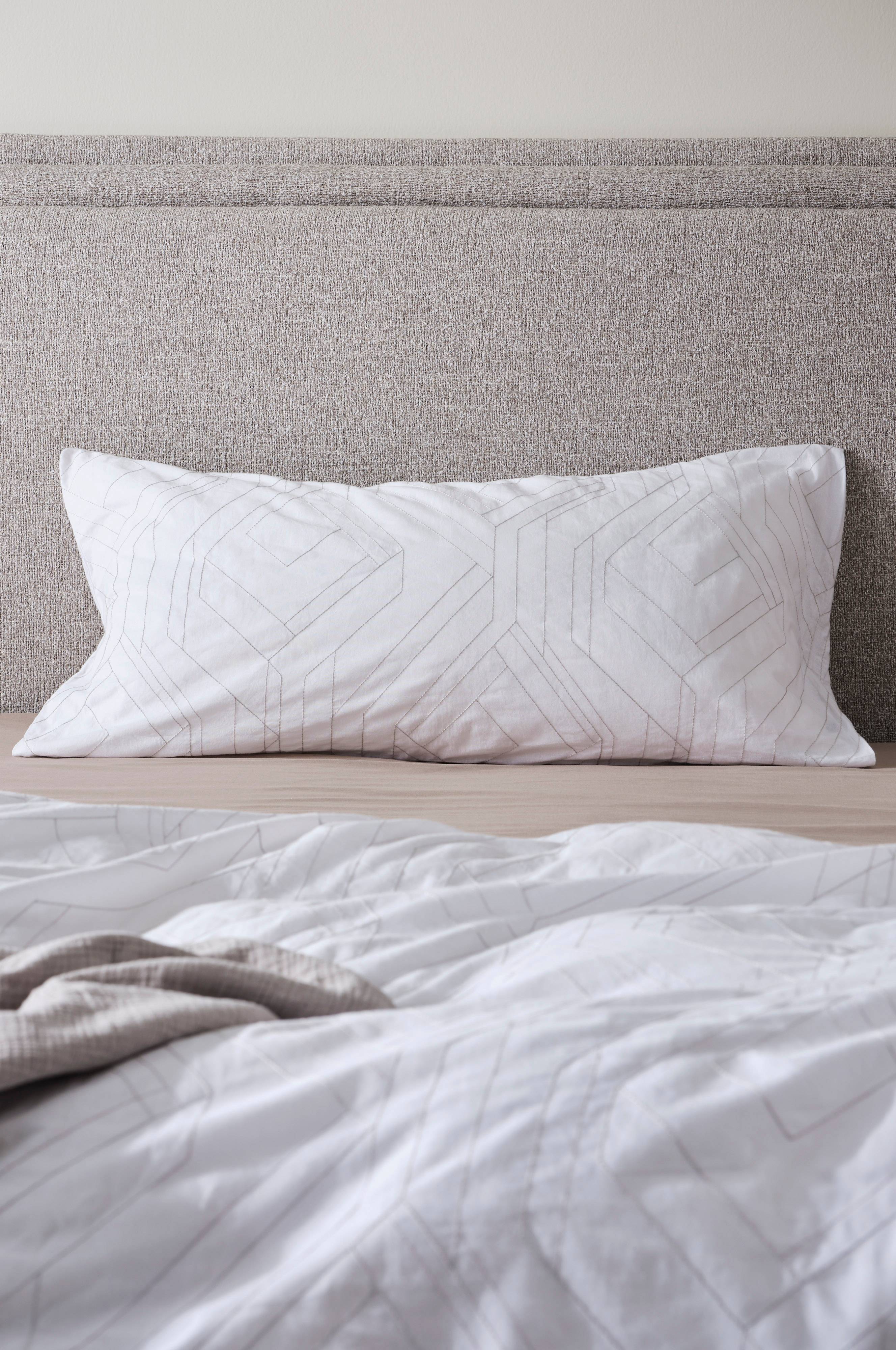 Putevar i deilig bomull. Putevaret har brodert mønster med tynn tråd i nærliggende farge som gir et fint, diskre mønster. Baksiden er ensfarget i samme stoff som forsiden. Bomull er deilig å sove i, og oppleves sval og myk mot huden. Lukkes med glidelås. Trådtetthet på 144 tc. (Trådtettheten forteller om antallet tråder, thread counts, pr. kvadrattomme i et stoff. Jo høyere trådtetthet, desto høyere kvalitet.)