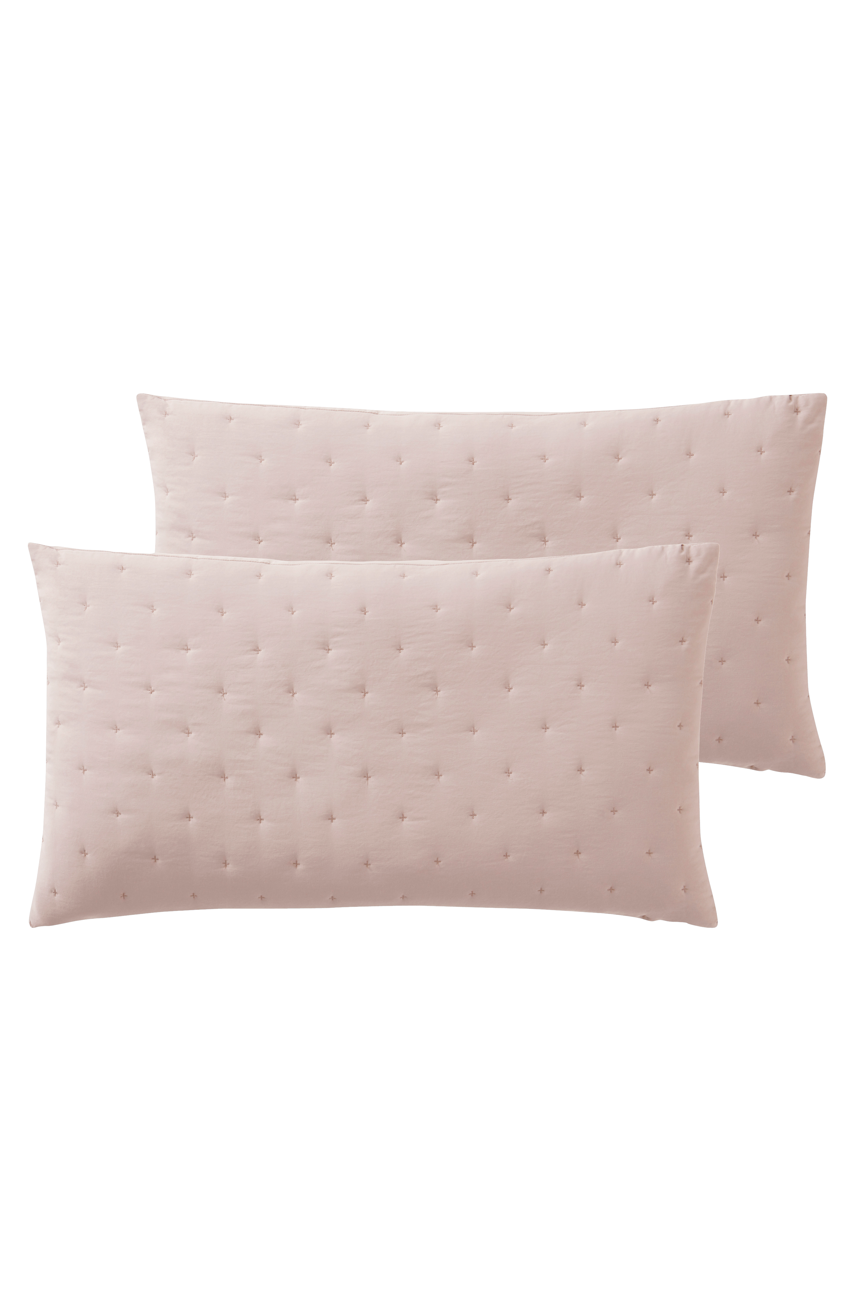 2-pk putetrekk sydd i myk polyester som er vasket for å få en deilig følelse. Putetrekkene har enkel quilting av broderte, små kryss som danner et diskre mønster på forsiden. Stoffet har en lett vattering som holdes på plass av quiltingen. Baksiden er glatt. Skjult glidelås på baksiden.