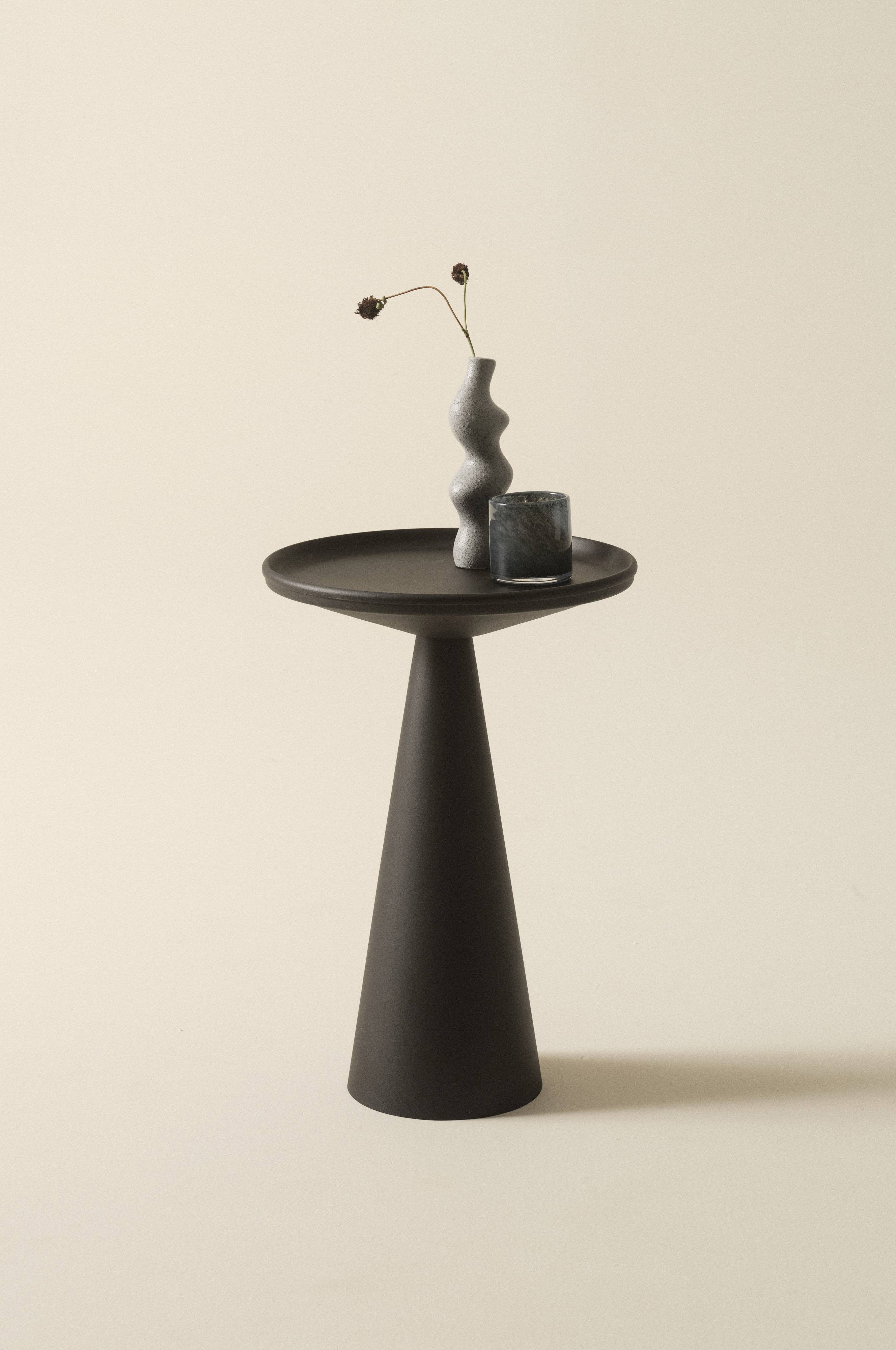 CAMERI er et smekkert sidebord av jern med pulverlakkert, matt overflate. Bordplaten har avrundet kant, som et brett. Den kjegleformede foten er hul slik at bordet blir lett og smidig å håndtere.