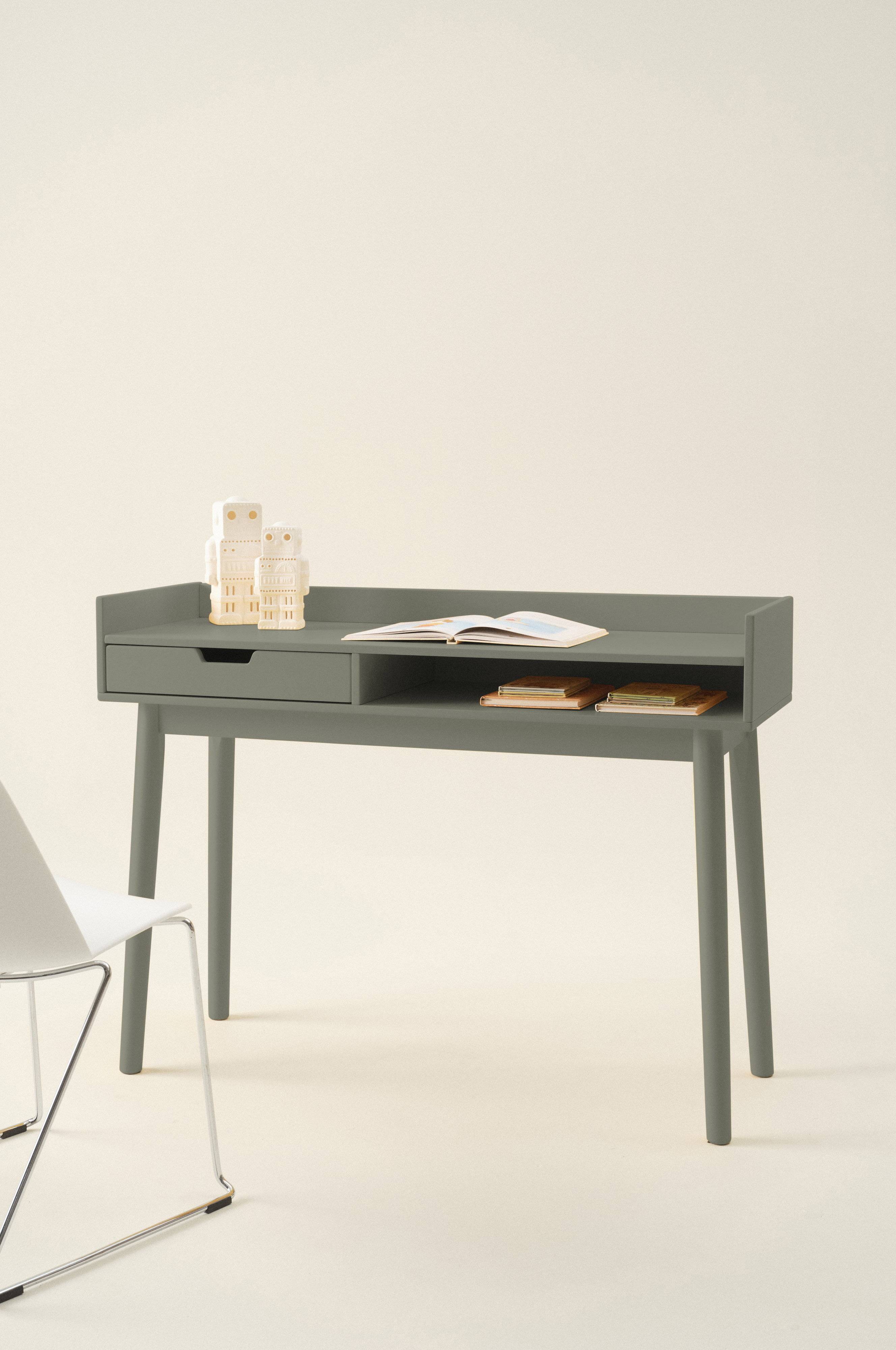 CAMPO-pulten er laget av FSC-sertifisert MDF med en lakkert overflate. Skrivebordet har en ramme rundt seg som gjør at blyanter, leksebøker og hobbyartikler kan bli liggende uten å falle ned på gulvet. Under skrivebordet er det oppbevaringsplass med en skuff og en åpen hylle til alt som er godt å ha, som blyantbrett, tegneblokker og tastatur. Skuffen har en utskåret åpning som håndtak og et stopp som hindrer den i å falle ut i ytterstilling. De runde bena er svakt utsvungne. Noe montering er nødvendig. Monteringsanvisning er inkludert.