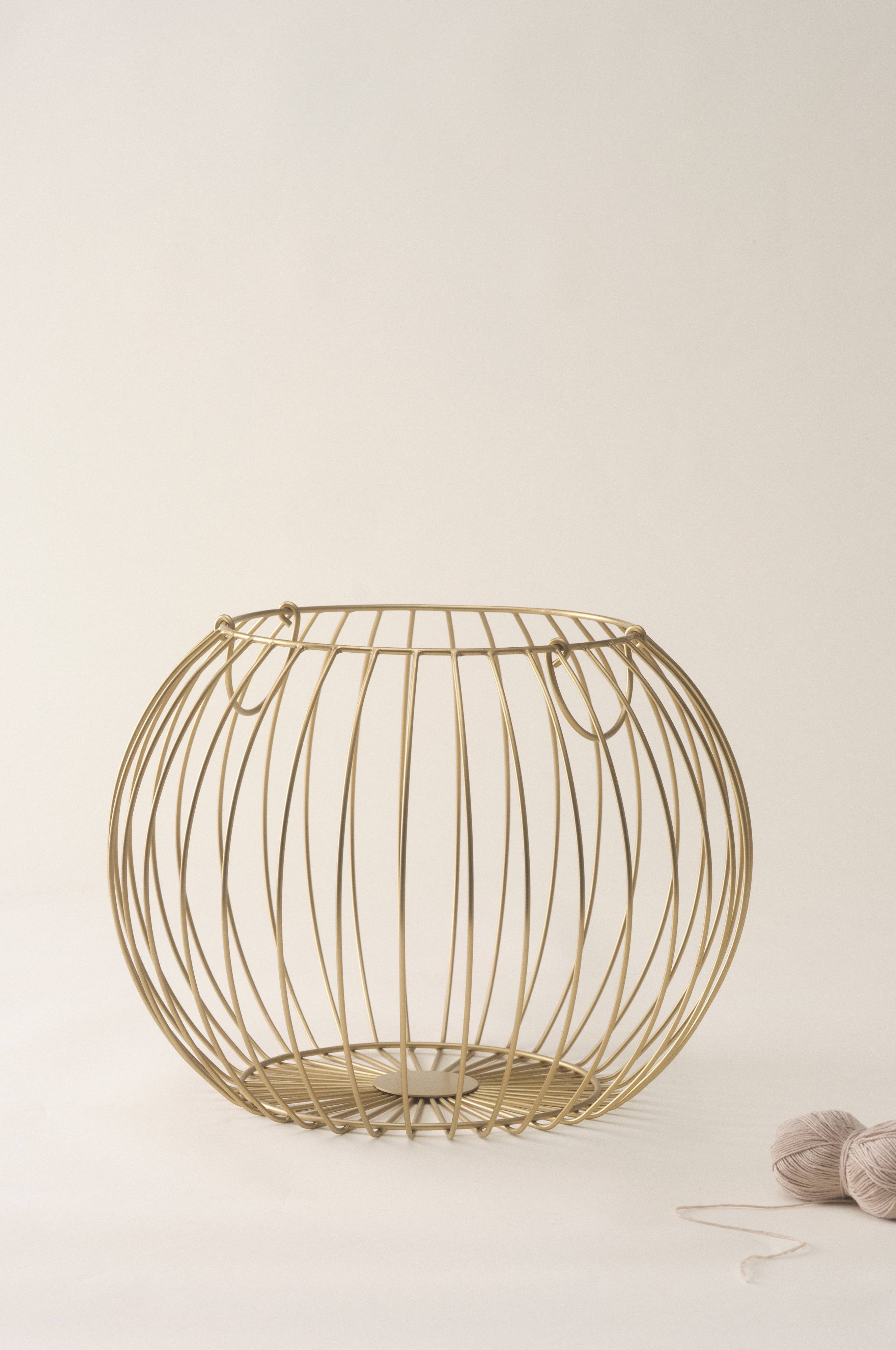 Håndlaget oppbevaringskurv av jern med fin overflatefinish. Trådkurven har fin rund form og to håndtak, og gir muligheten til dekorativ oppbevaring, kanskje med vakre skjerf i gangen eller pledd i stua? Håndverket gjør hver trådkurv unik.