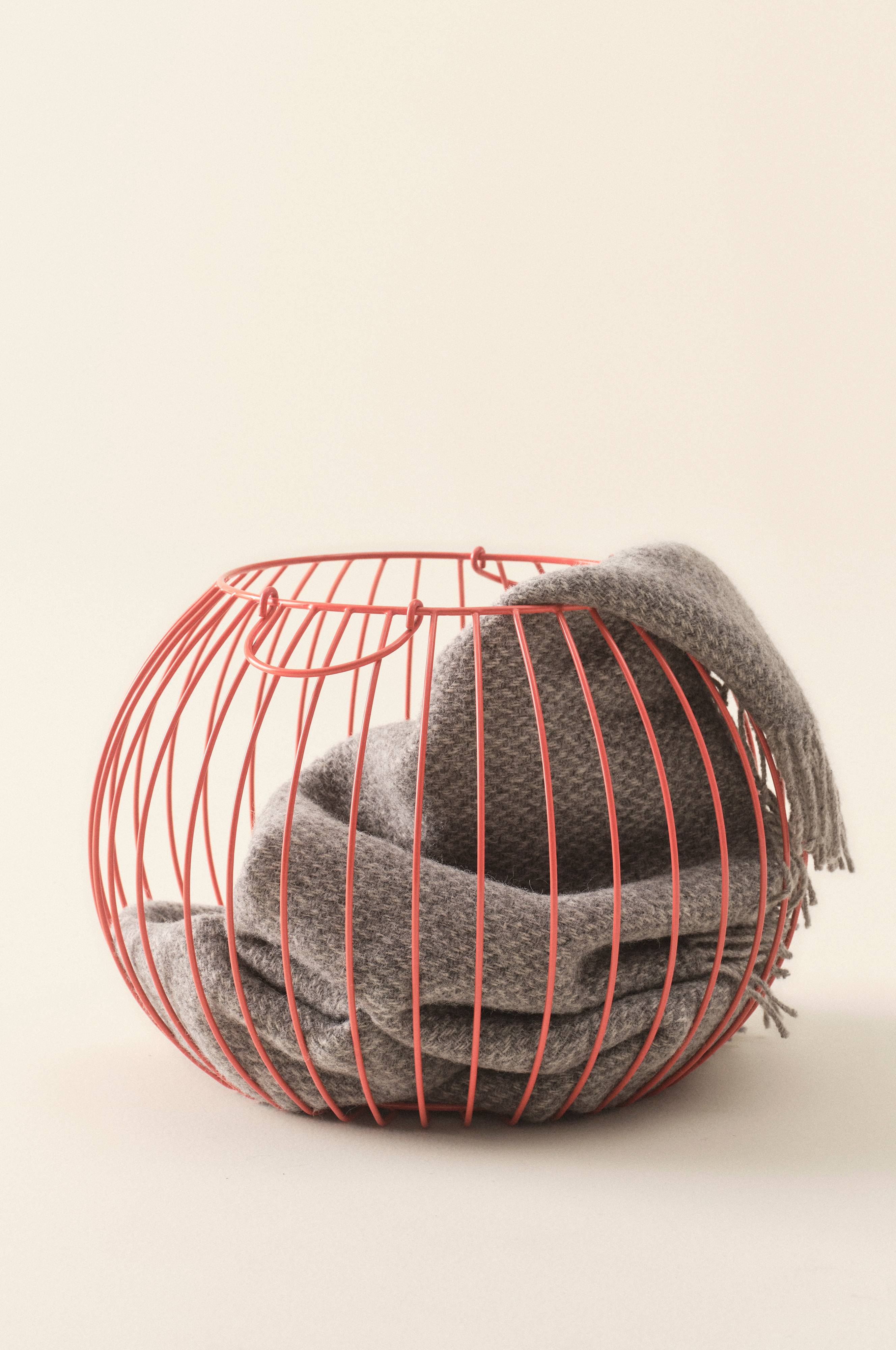 Håndlaget oppbevaringskurv av jern med fin overflatefinish. Trådkurven har fin rund form og to håndtak, og gir muligheten til dekorativ oppbevaring, kanskje med vakre skjerf i gangen eller pledd i stua? Håndverket gjør hver trådkurv unik.
