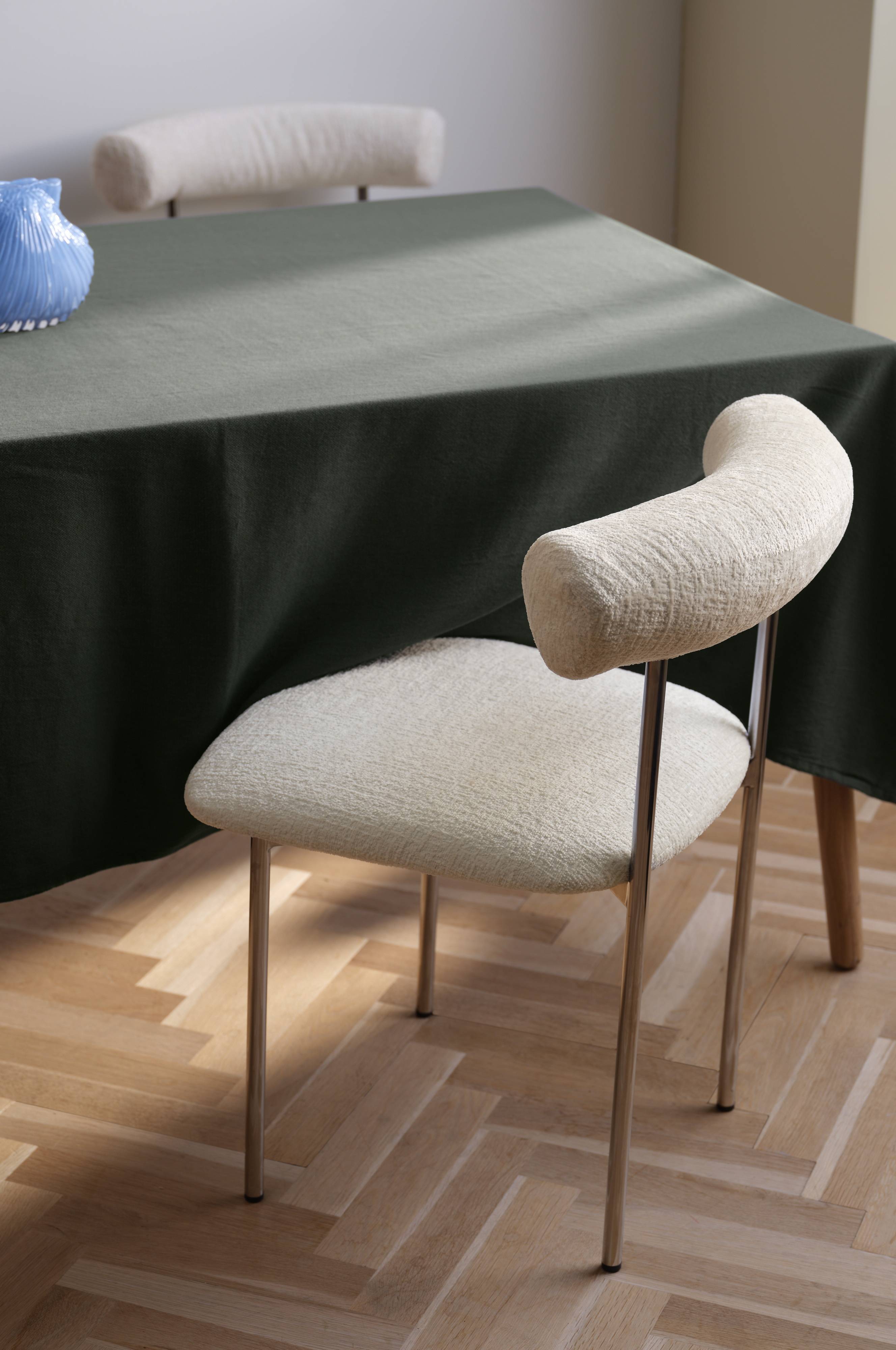 Catalina-stolen gir en innbydende touch til spisestuen med sitt chenillestofftrekk og elegante ramme i rustfritt stål. Den myke teksturen er designet for komfort og stil, og lover en herlig matopplevelse. Dette settet med to stoler er ideelt for moderne kjøkken, og den moderne designen og det luksuriøse møbeltrekket gjør stolen til en berikelse i enhver spisestue. Perfekt for deg som ønsker en blanding av komfort og mote i møblene dine.