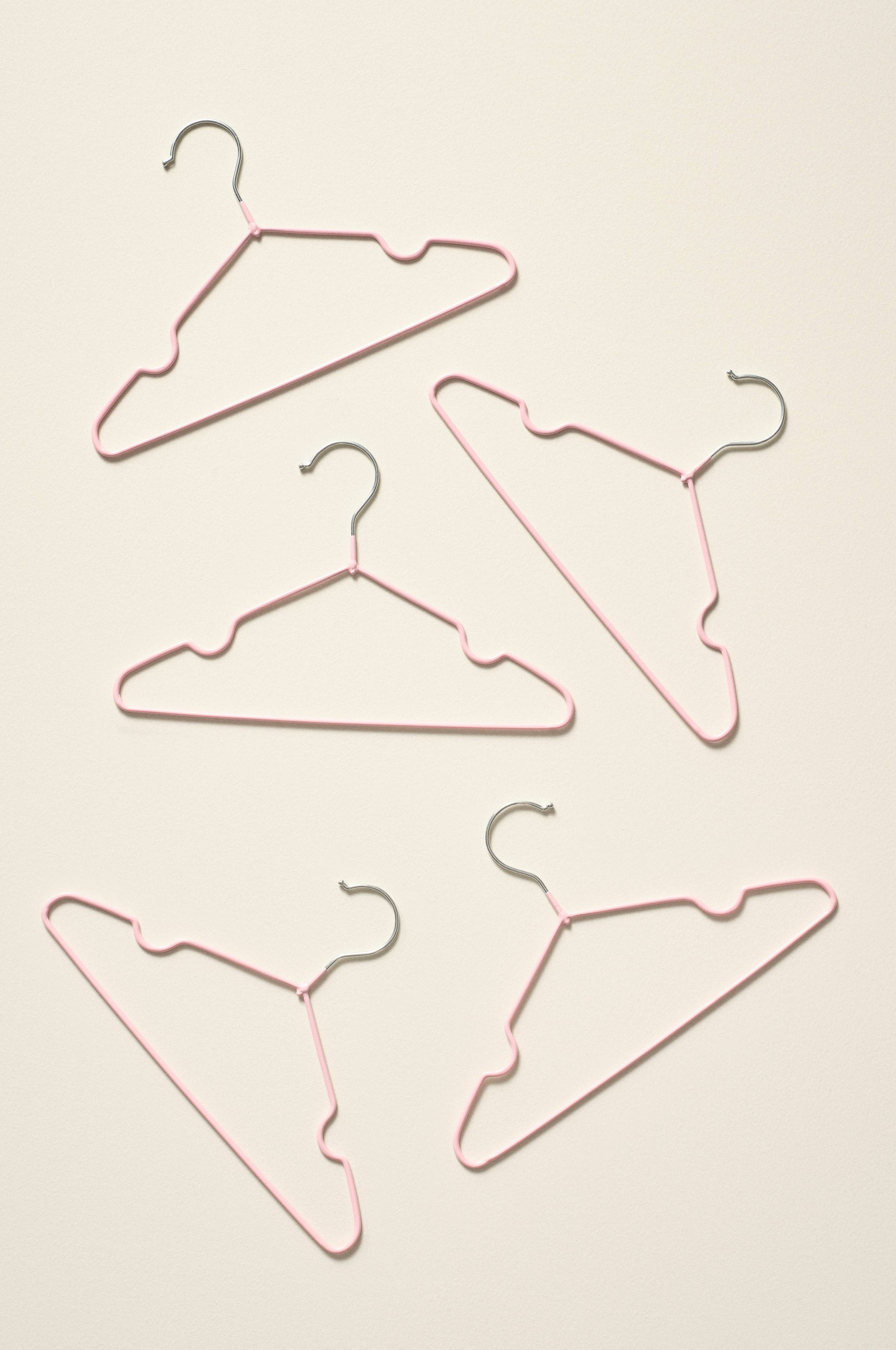 5-pk kleshengere av rustfritt stål med farget plasttrekk i glassaktige farger. Kleshengerne er praktiske og tar liten plass i garderoben. Disse er litt små i størrelsen, og passer fint til barneklærne.