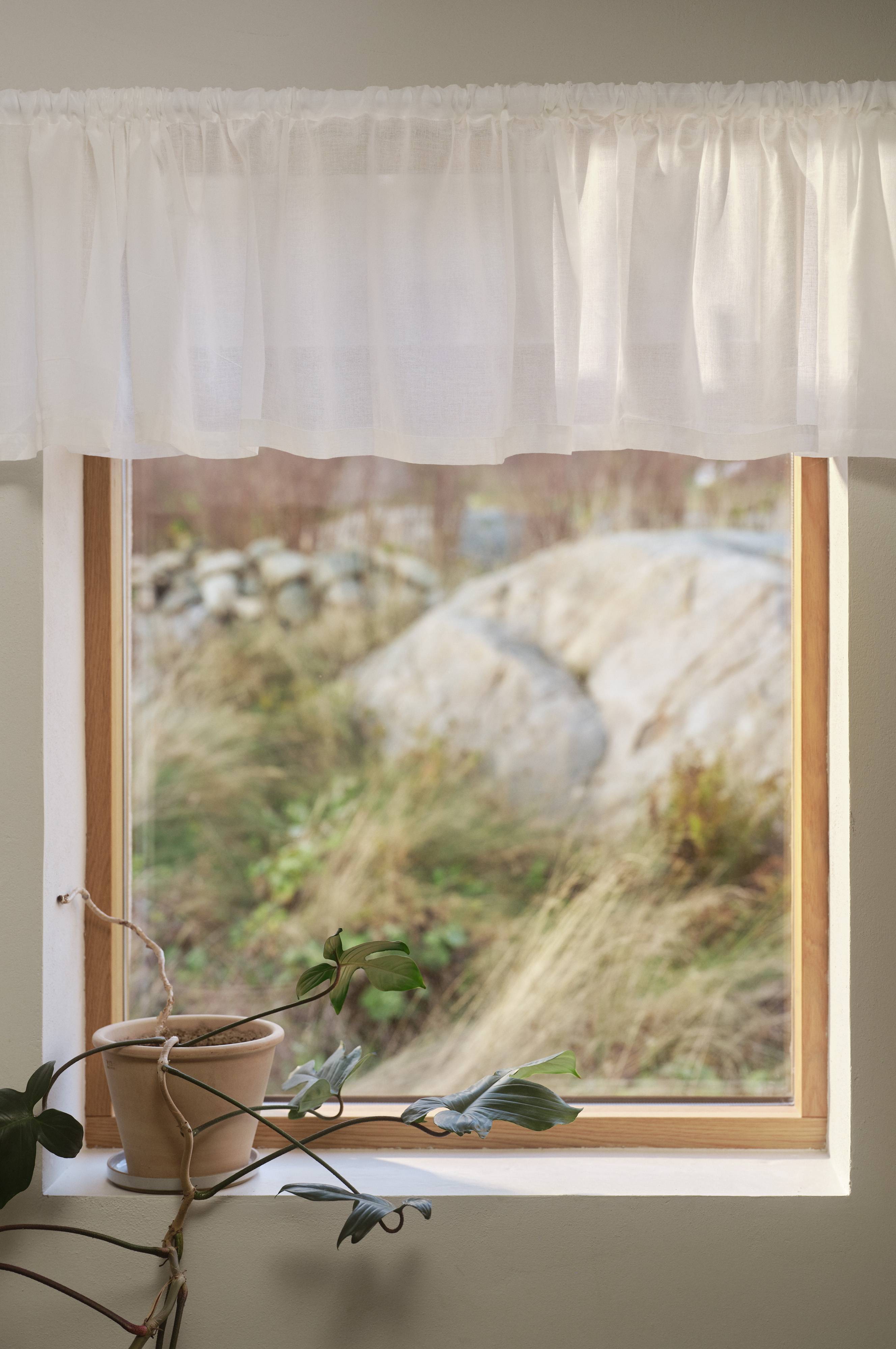 CORINNE gardinkappe gir et luftig preg til rommet ditt med sitt lette voiledesign. Denne gardinkappen er laget av bomull, og den diffunderer lyset og skaper en rolig atmosfære i ethvert rom. Den er perfekt for kjøkken eller oppholdsrom og rammer elegant inn vinduer.