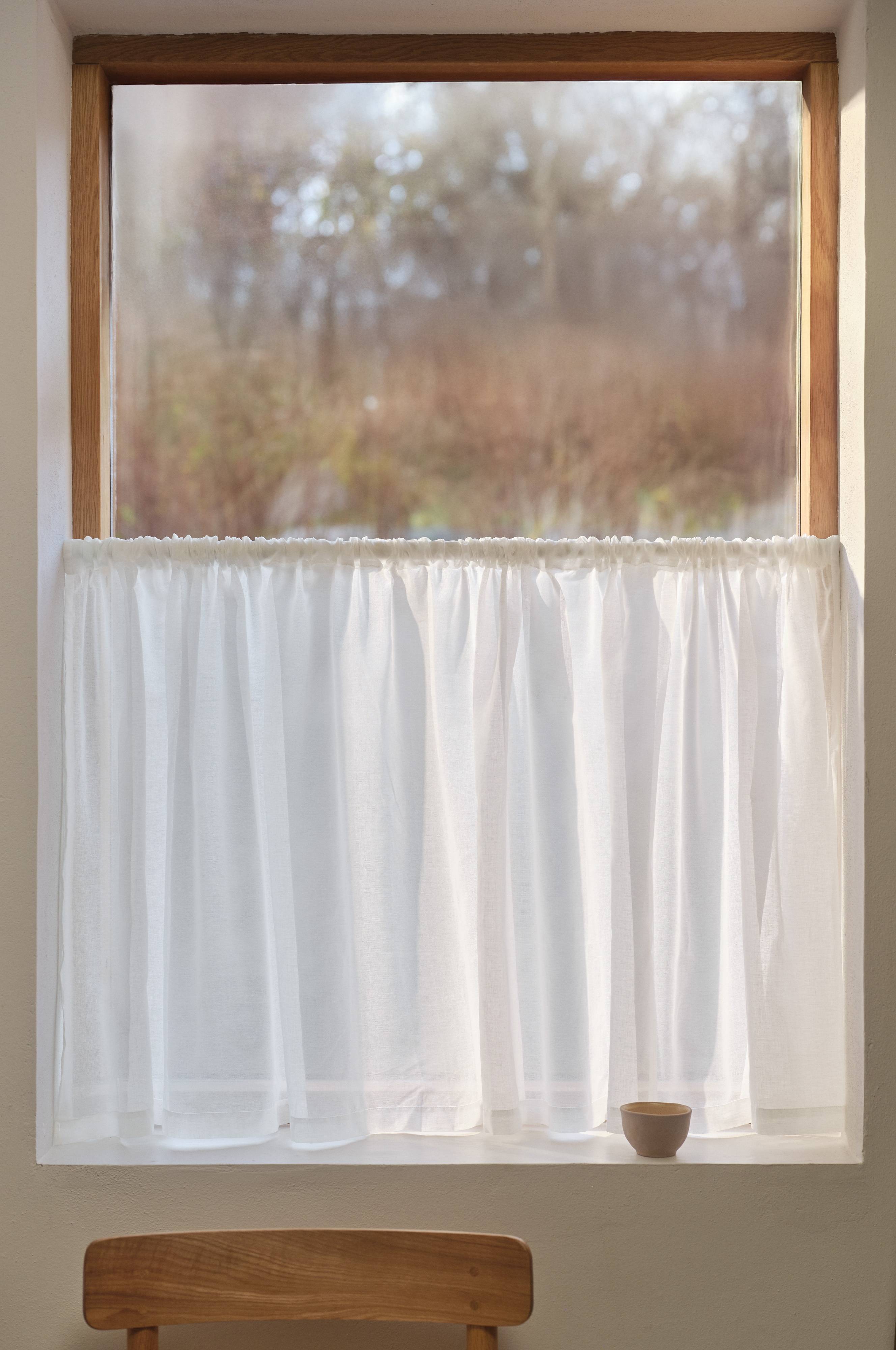 CORINNE kafégardin gir en herlig touch til ethvert kjøkkenvindu. Den er laget av bomullsvoile og gir et mykt og luftig uttrykk, samtidig som den slipper gjennom mildt lys. Perfekt for å skape privatliv uten å gå på bekostning av stilen. Ideell for å utfylle en koselig kjøkkeninnredning med et luftig, tidløst uttrykk.