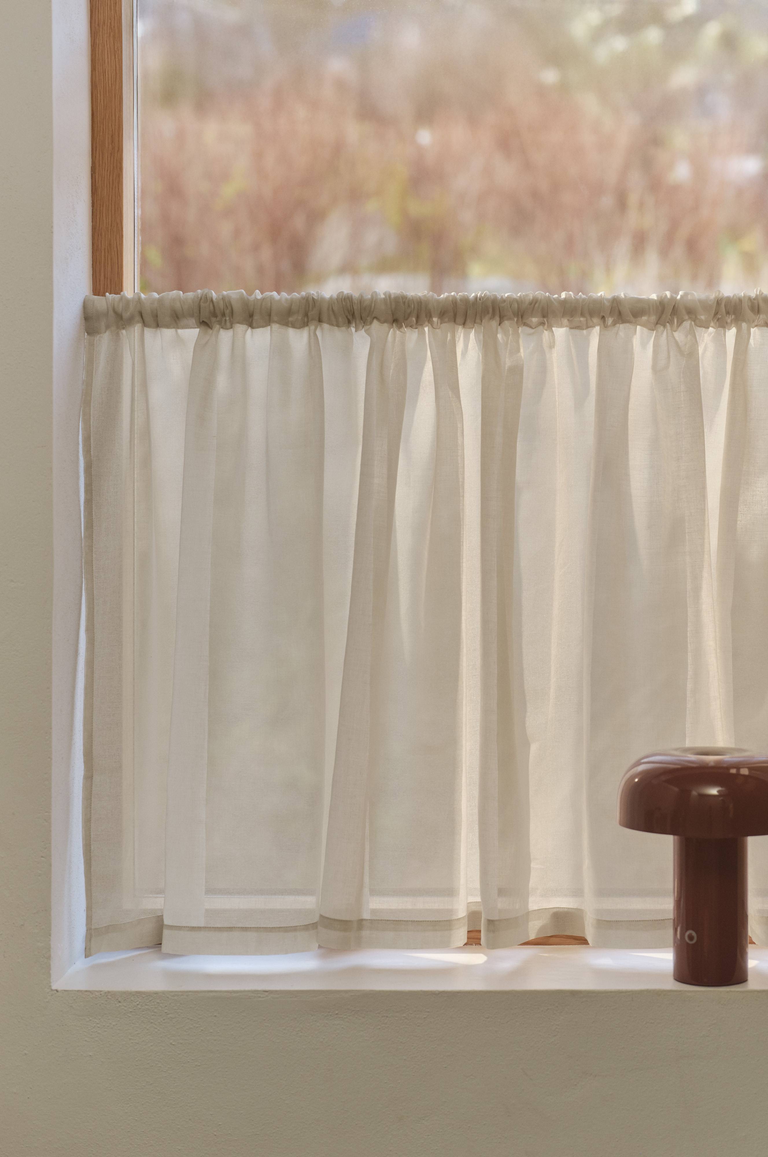 CORINNE kafégardin gir en herlig touch til ethvert kjøkkenvindu. Den er laget av bomullsvoile og gir et mykt og luftig uttrykk, samtidig som den slipper gjennom mildt lys. Perfekt for å skape privatliv uten å gå på bekostning av stilen. Ideell for å utfylle en koselig kjøkkeninnredning med et luftig, tidløst uttrykk.