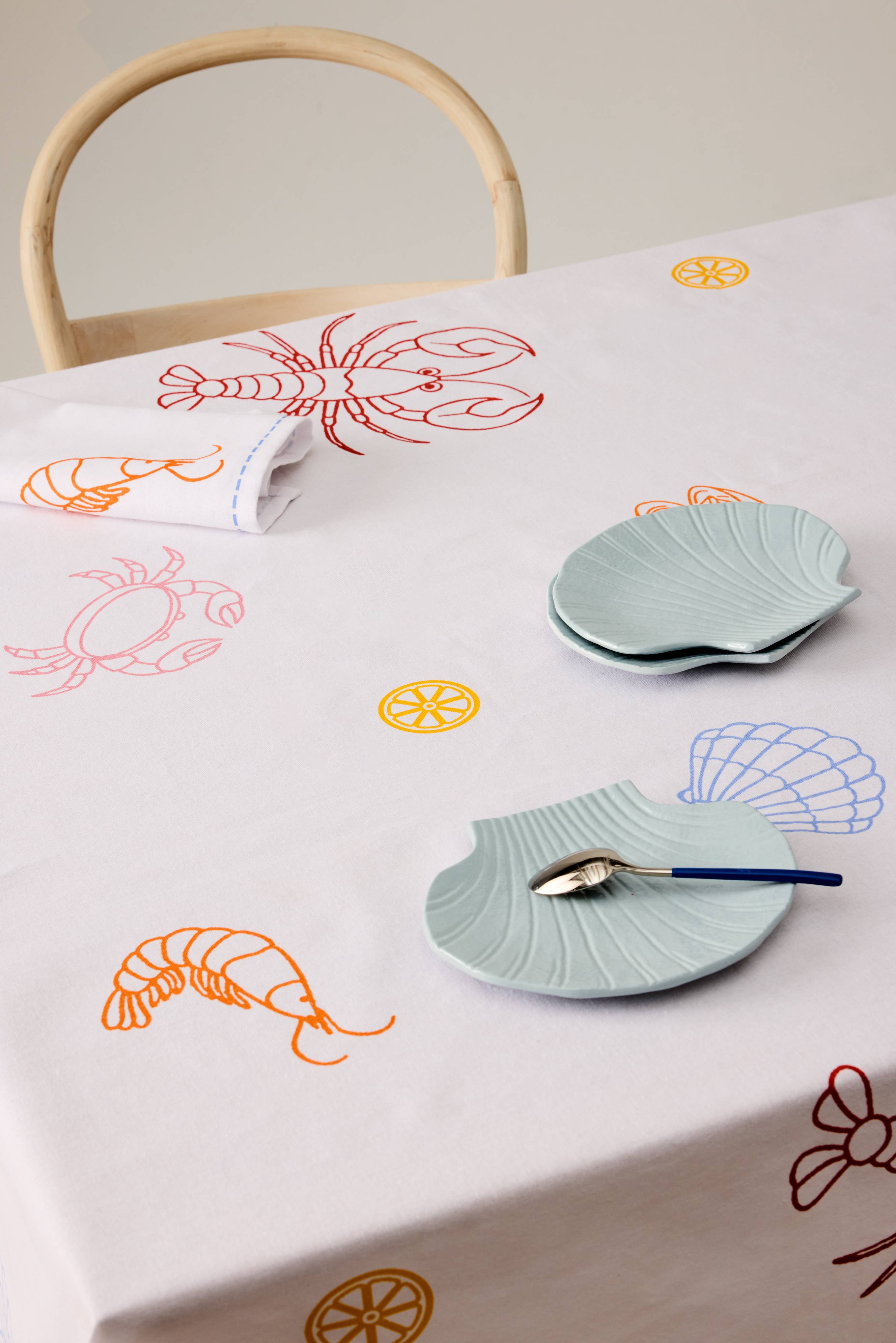 CRAY CRAY-duken har et livlig havmotiv med herlige krepsetrykk i spisestuen din. Duken er en del av CRAY CRAY-familien og passer perfekt til innredning med havtema, og gir et sammenhengende utseende med matchende elementer. Duken er ideell til både uformelle og formelle sammenkomster og gir et levende preg til enhver anledning. Skap en leken atmosfære med denne sjarmerende og karakteristiske duken.