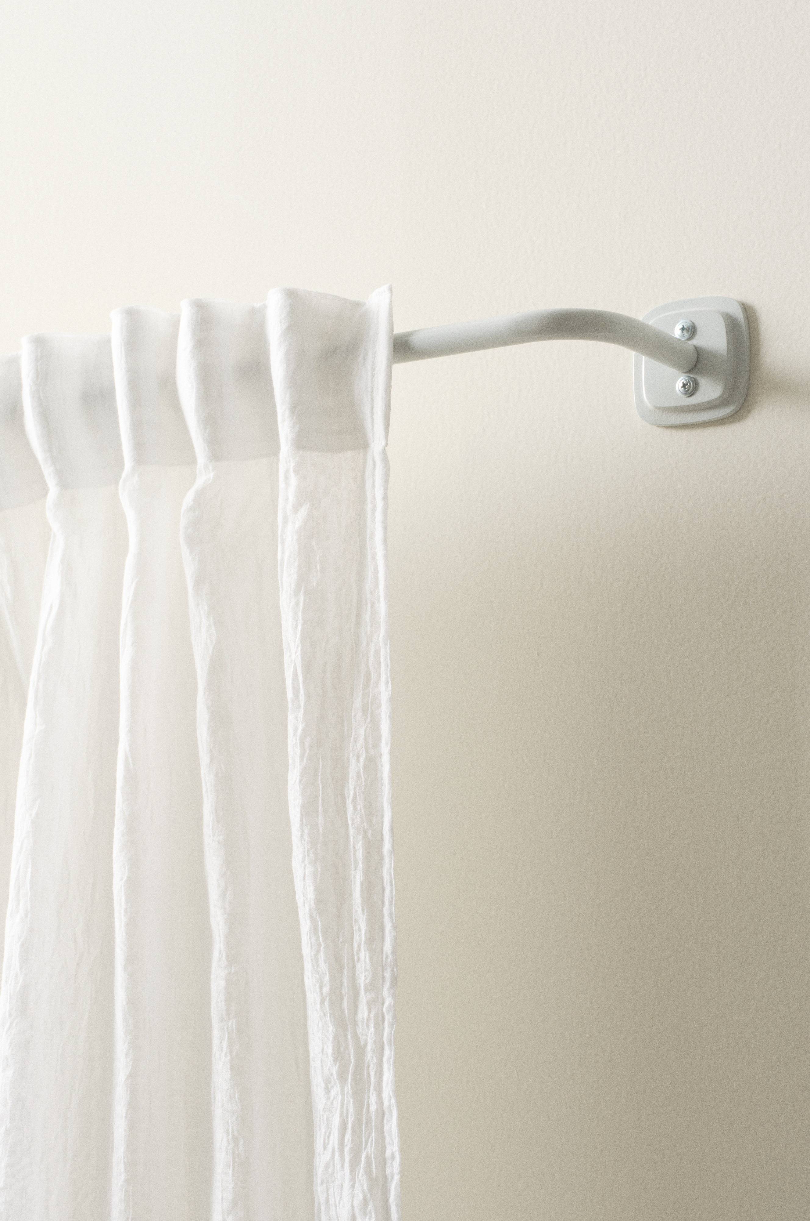 Gardinstangen har justerbar lengde. To veggfester og et midtfeste. Midtfestet må settes opp for å holde stangen stabilt på plass. Midtfestet er av jern.