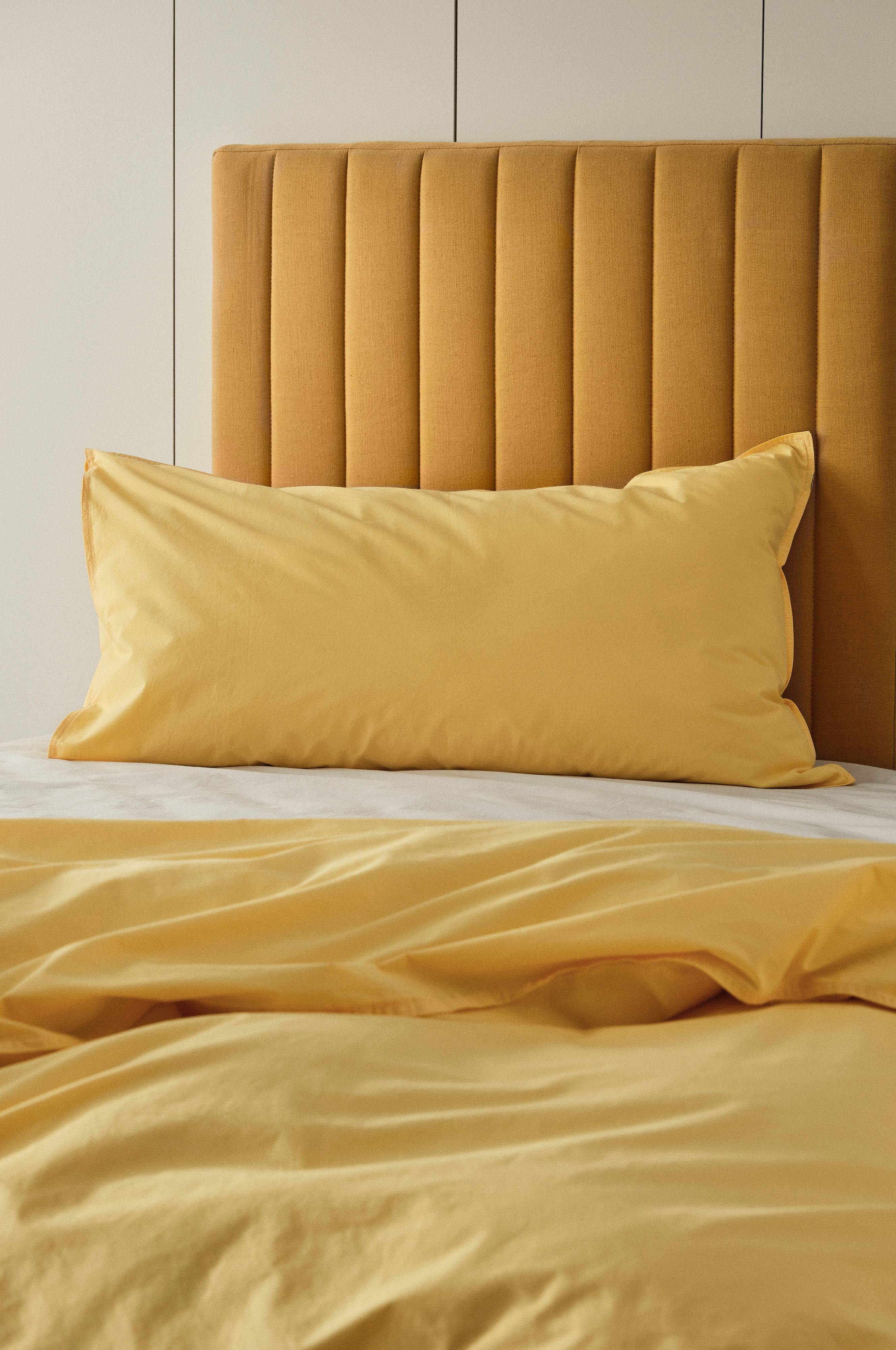 Putevar i percale av økologisk bomull. Percale er en ekstra myk kvalitet som er vevd med tynne, fine bomullstråder. Putevaret er plaggvasket, noe som betyr at det er vasket etter søm. Trådtetthet på 200 tc. (Trådtettheten forteller om antallet tråder, thread counts, pr. kvadrattomme i et stoff. Jo høyere trådtetthet, desto høyere kvalitet).