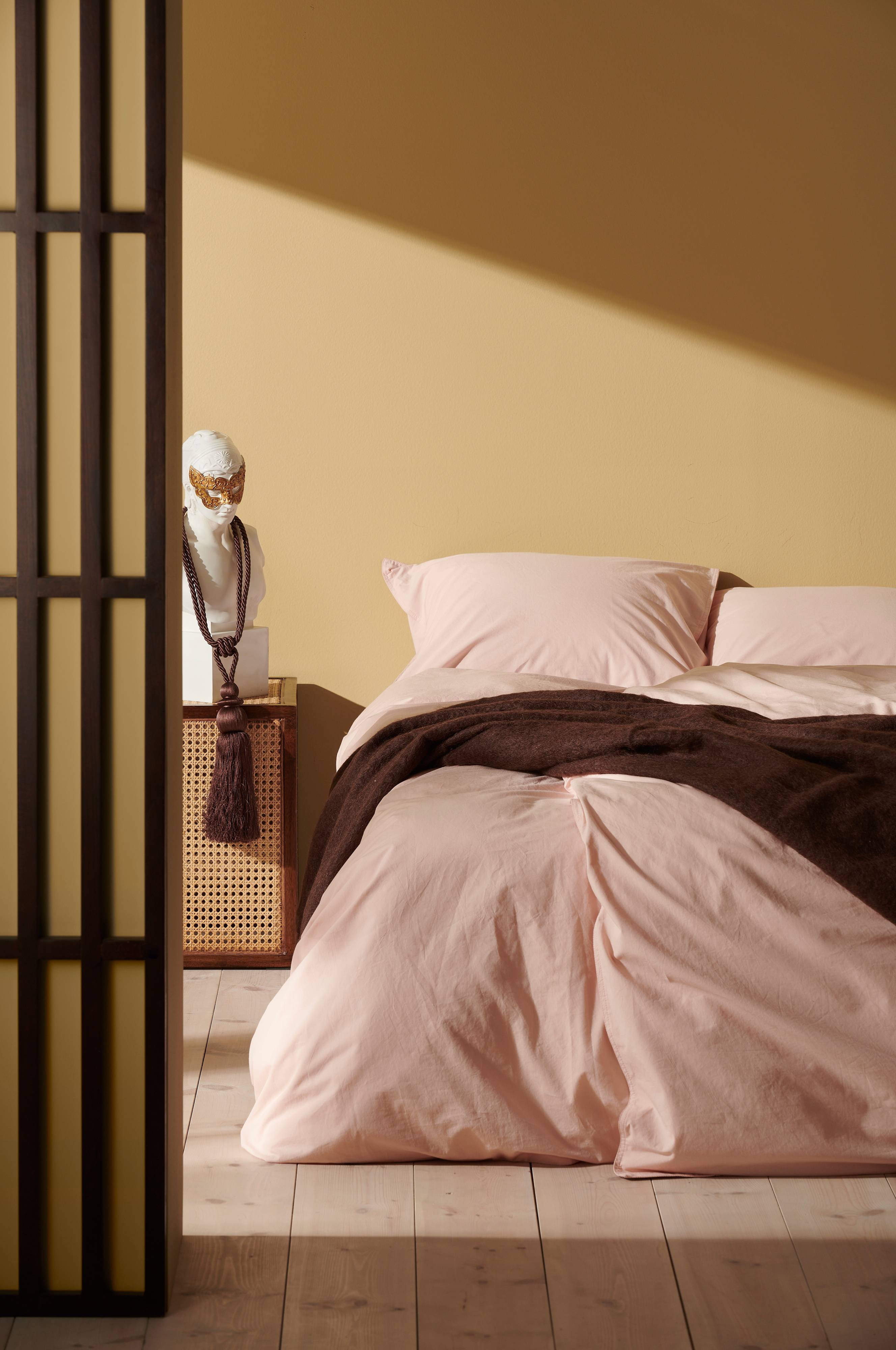 Sengesett i 2 deler av økologisk, plaggvasket bomullspercale. Å re opp med bomull er luftig og mykt mot kroppen. Trådtetthet på 200 tc. (Trådtettheten forteller om antallet tråder, thread counts, pr. kvadrattomme i et stoff. Jo høyere trådtetthet, desto høyere kvalitet).
