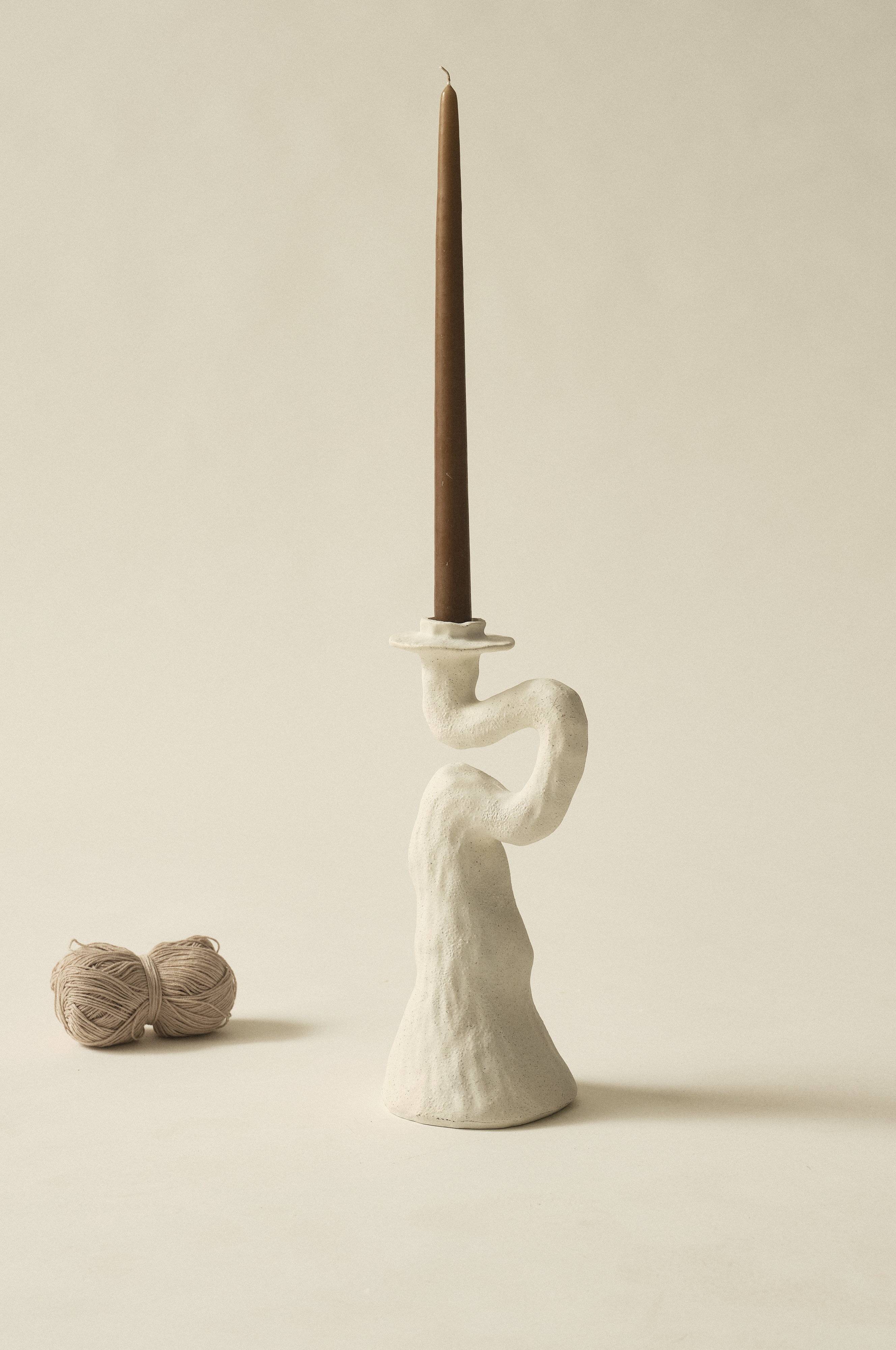 Håndlaget lysestake av polyresin i en mykt smidig og bølgende form som bringer tankene til naturen. Lysestaken er stor og flott, og passer både til levende lys og batteridrevne lys. Lys medfølger ikke.
