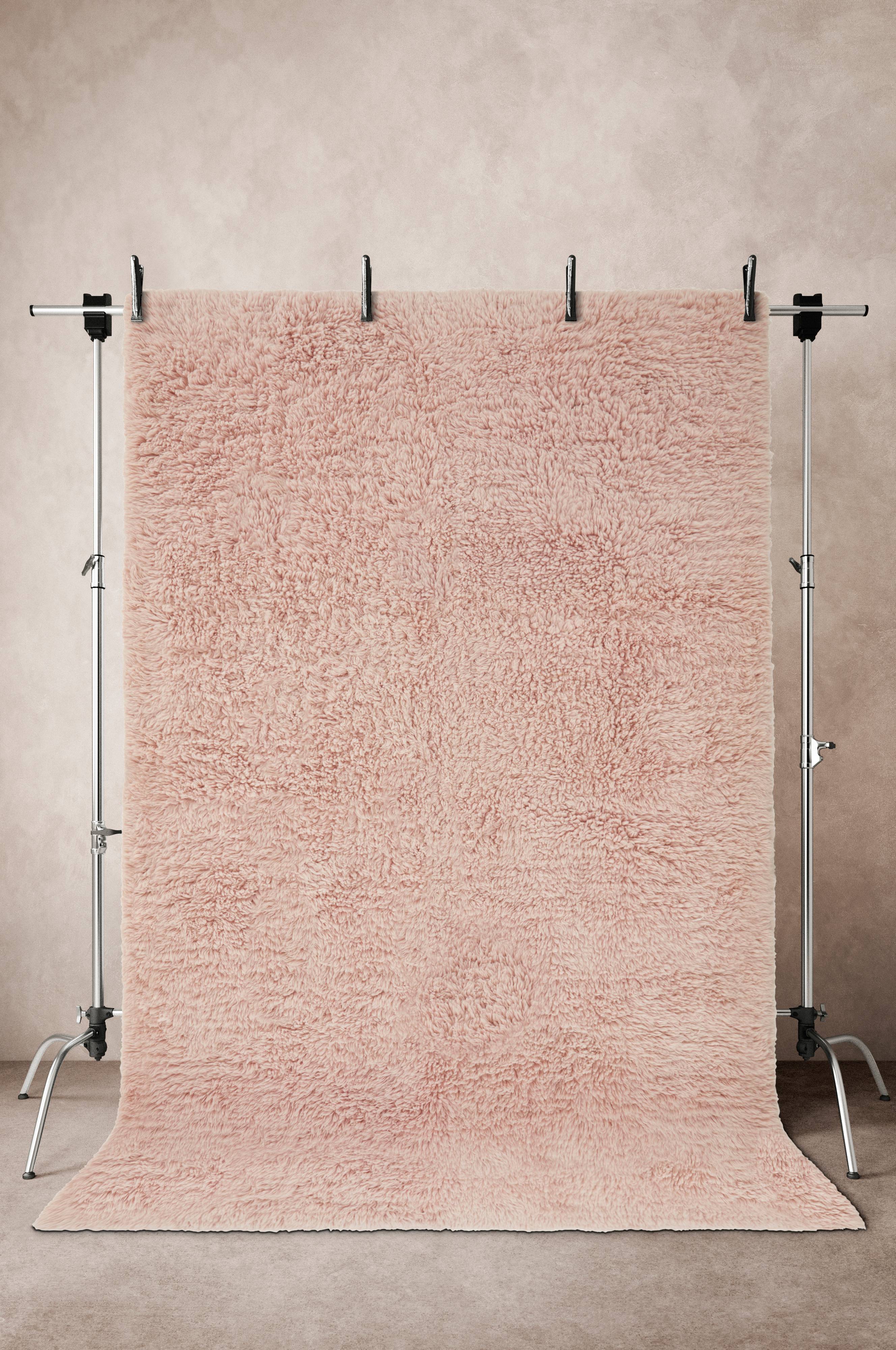 Håndknyttet ullteppe av garnfarget ull. Det ensfargede teppet er mykt og deilig med lang, kraftig lugg. Ullteppet gir deg varme, herlige gulv å gå på ettersom ull er naturlig varm. Et håndlaget teppe er et fint håndverk, og hvert teppe er unikt. Lugghøyde 4-4,5 cm. Tykkelse 5-5,5 cm. 3400 g/m².