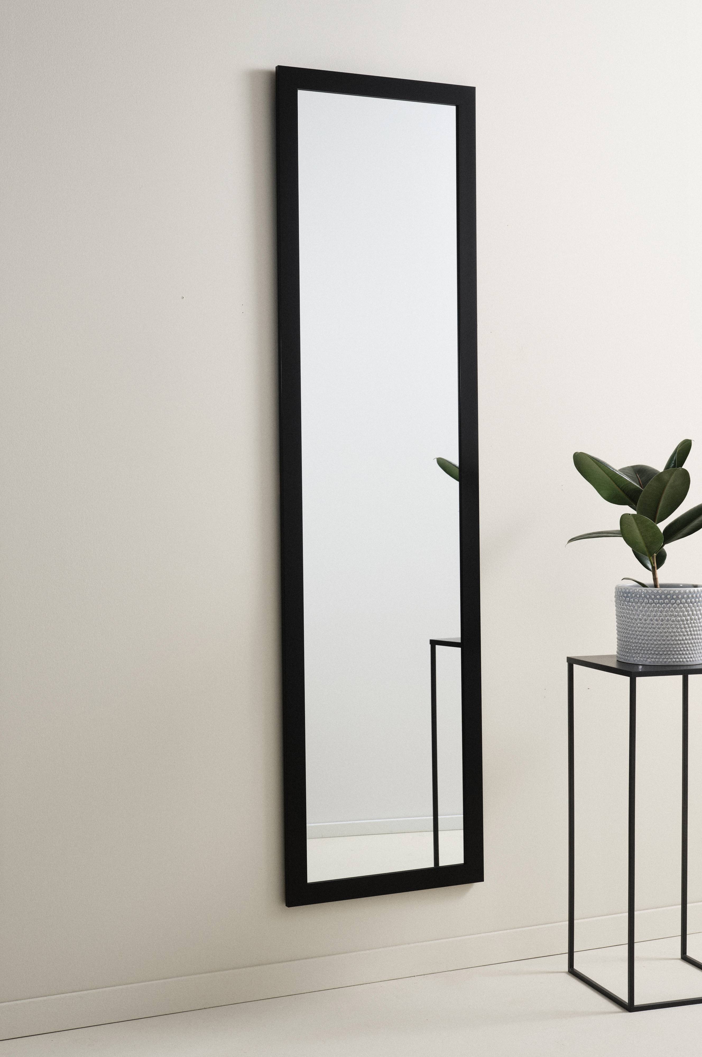 Rektangulært, høyt og smalt speil med ramme av polystyren. Baksiden er av MDF. Rammen er en enkel og stilren, den er lett å kombiner med andre møbler og hvis du har andre rammer i rommet. Speilet passer fint på badet og i andre våtrom.