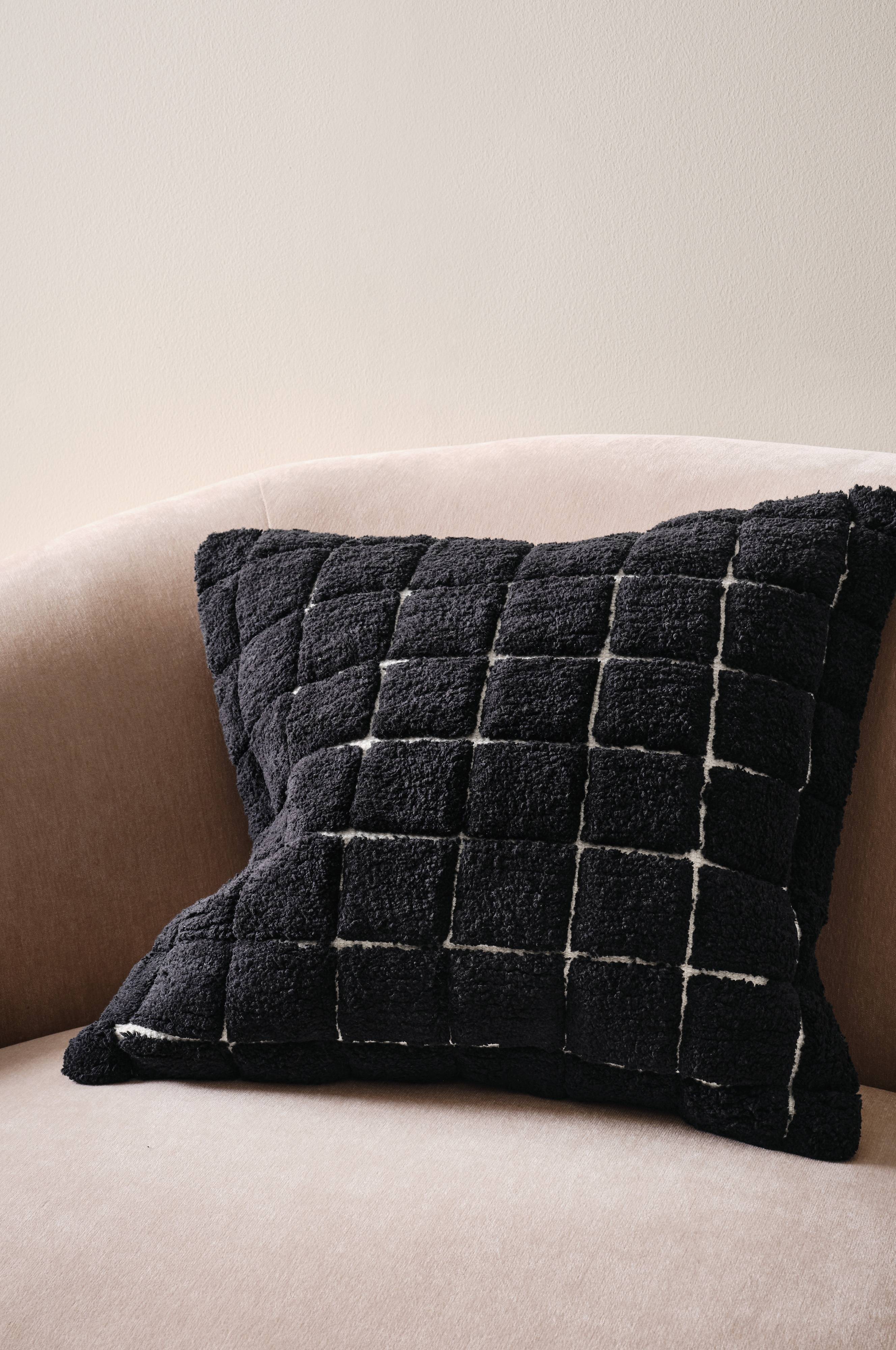 1-pk putetrekk med tuftede firkanter på et litt grovt vevd stoff. Den myke, korte luggen skaper en fin effekt. Baksiden er et ensfarget, vevd stoff. Skjult glidelås. Stoffets gramvekt 440 g/m².