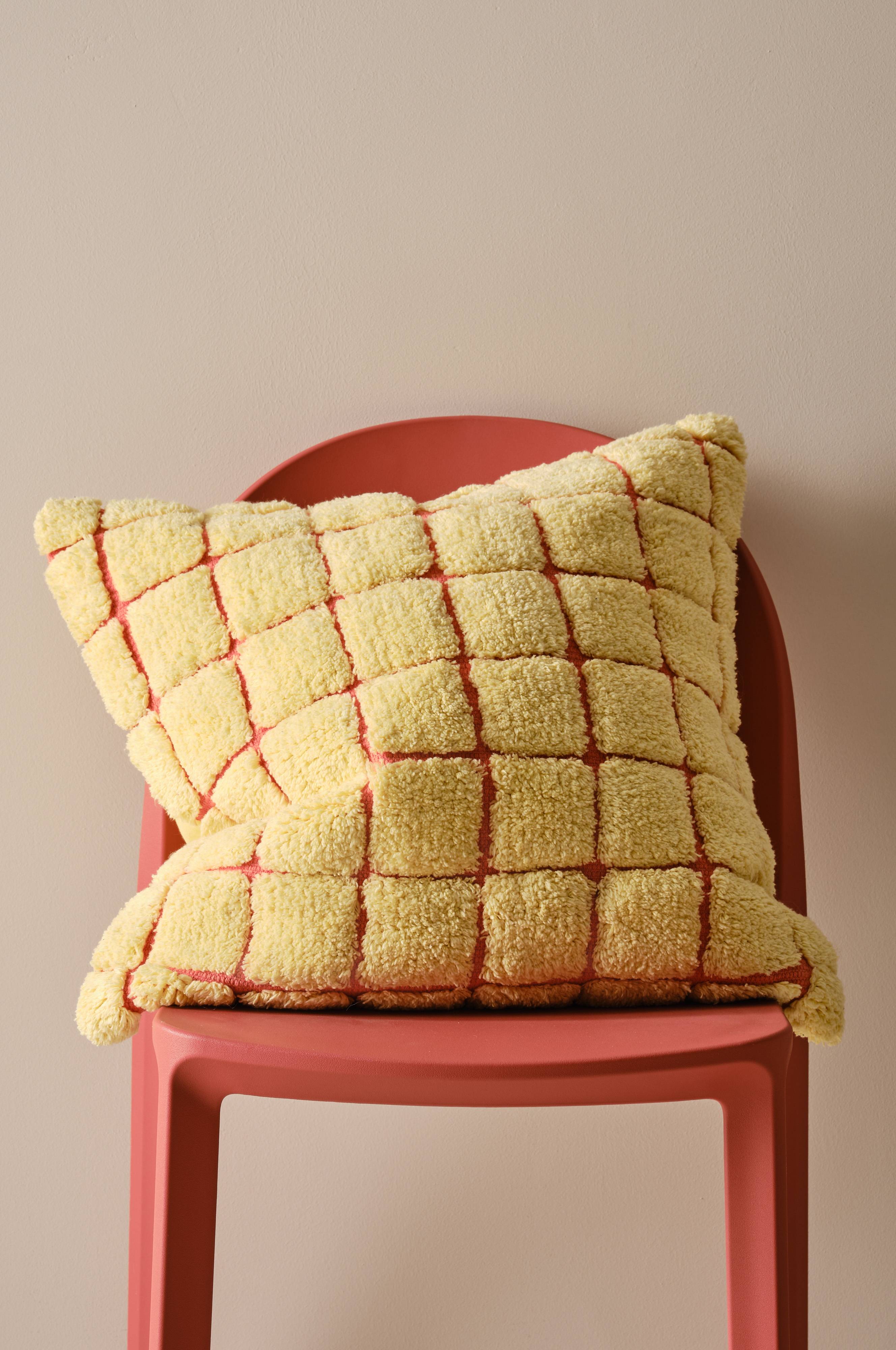 1-pk putetrekk med tuftede firkanter på et litt grovt vevd stoff. Den myke, korte luggen skaper en fin effekt. Baksiden er et ensfarget, vevd stoff. Skjult glidelås. Stoffets gramvekt 440 g/m².