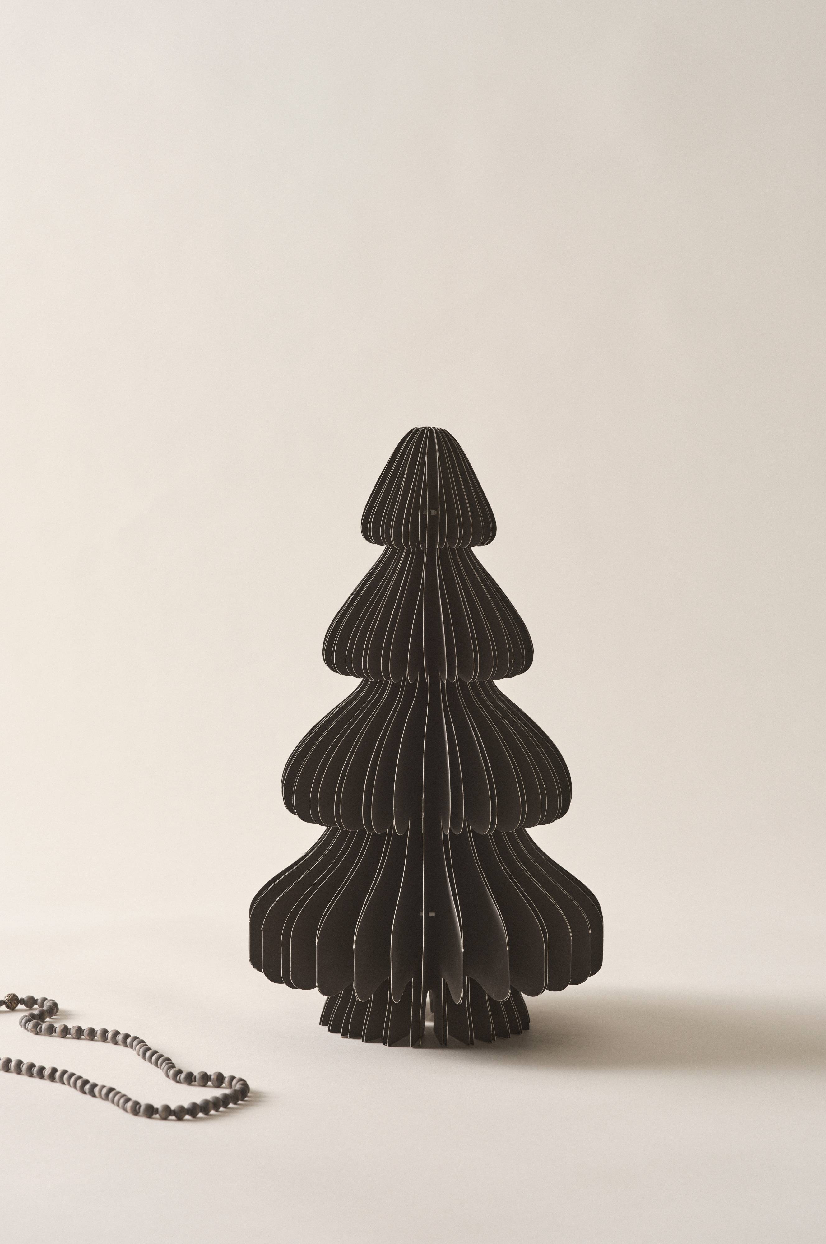 Håndlaget tre av papir med matt overflate. Treet er en koselig juledekor som du setter opp når du skal bruke det og bretter det sammen i esken sin når det skal oppbevares, praktisk. Håndverket gjør hvert tre unikt. Leveres i en papireske.
