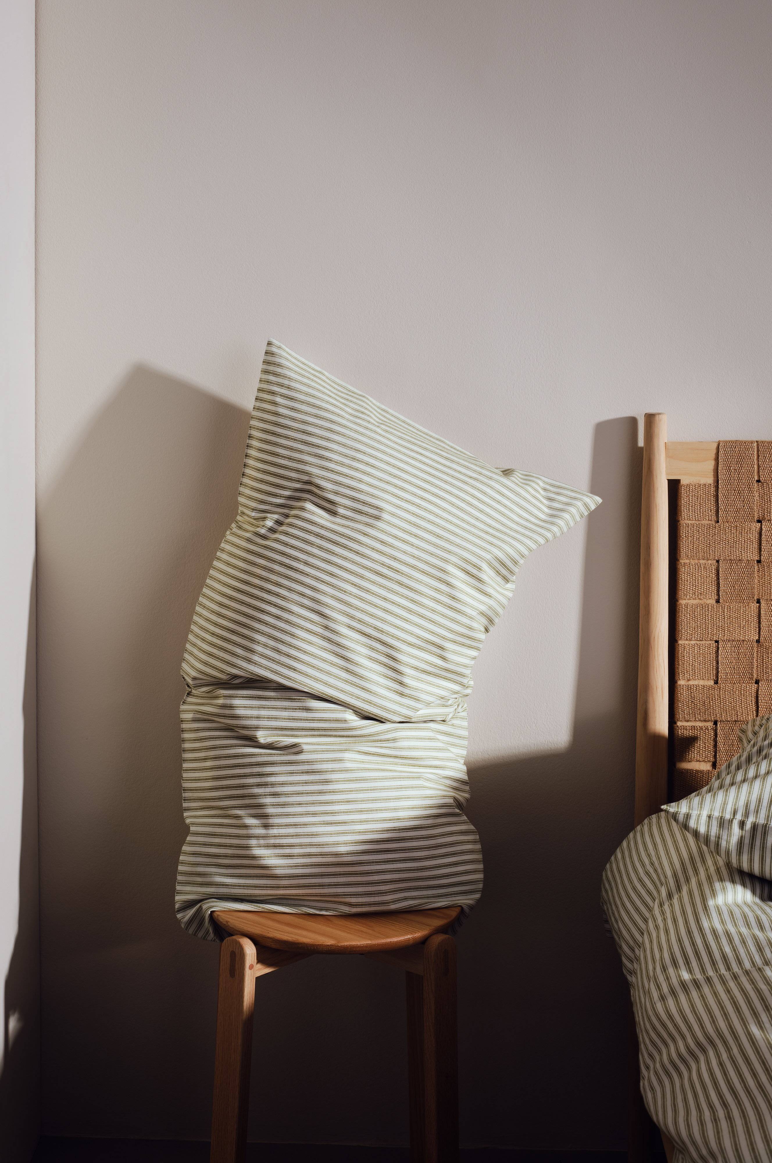 Putevaret ESSA tilfører eleganse til soverommet ditt med sine stilige garnfargede striper. Laget av økologisk bomull. Den sjenerøse størrelsen gir en luksuriøs følelse, perfekt for enhver soveromsinnredning. Husk å vaske før bruk for å få den beste opplevelsen.