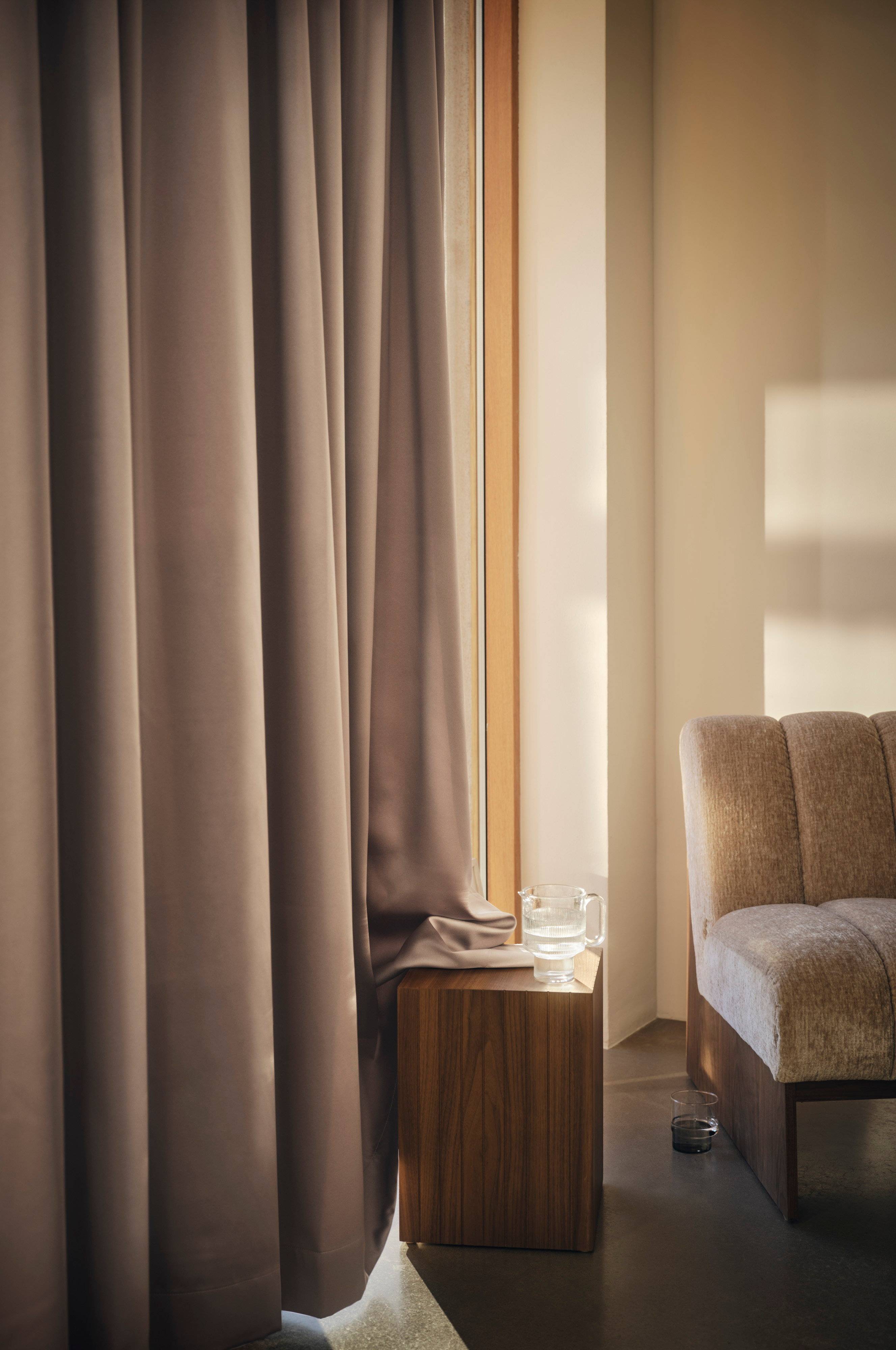 ESTELLE-gardinen gir en luksuriøs følelse med sitt satengstoff som etterligner elegansen til silke. Disse skreddersydde gardinene er designet for å skape en hotellatmosfære hjemme, og har den perfekte lengden fra tak til gulv. De er ufôrede for å skape en balanse mellom privatliv og naturlig lys, og de tilfører et snev av raffinement til ethvert rom og forbedrer uanstrengt boarealet ditt.