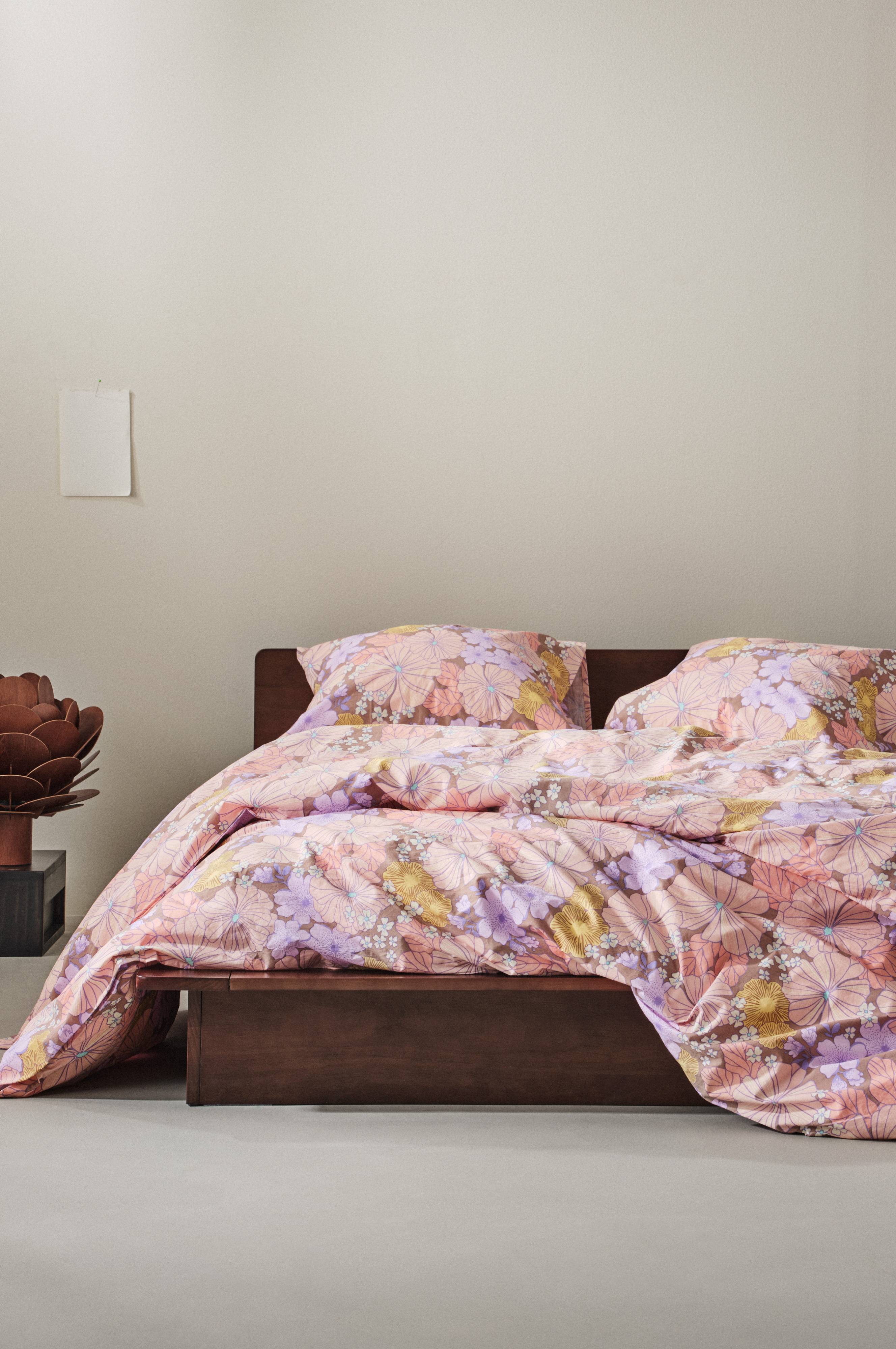 FIORI sengesett løfter soverommet ditt med sitt elegante retroblomstertrykk designet av Maria Carlberg. Settet er laget av myk percale-bomull og består av et ekstra bredt dynetrekk med praktiske håndhull og trykknapper samt to putevar med klassisk klaff. Som en del av FIORI-familien finner du matchende plagg for å fullføre looken.