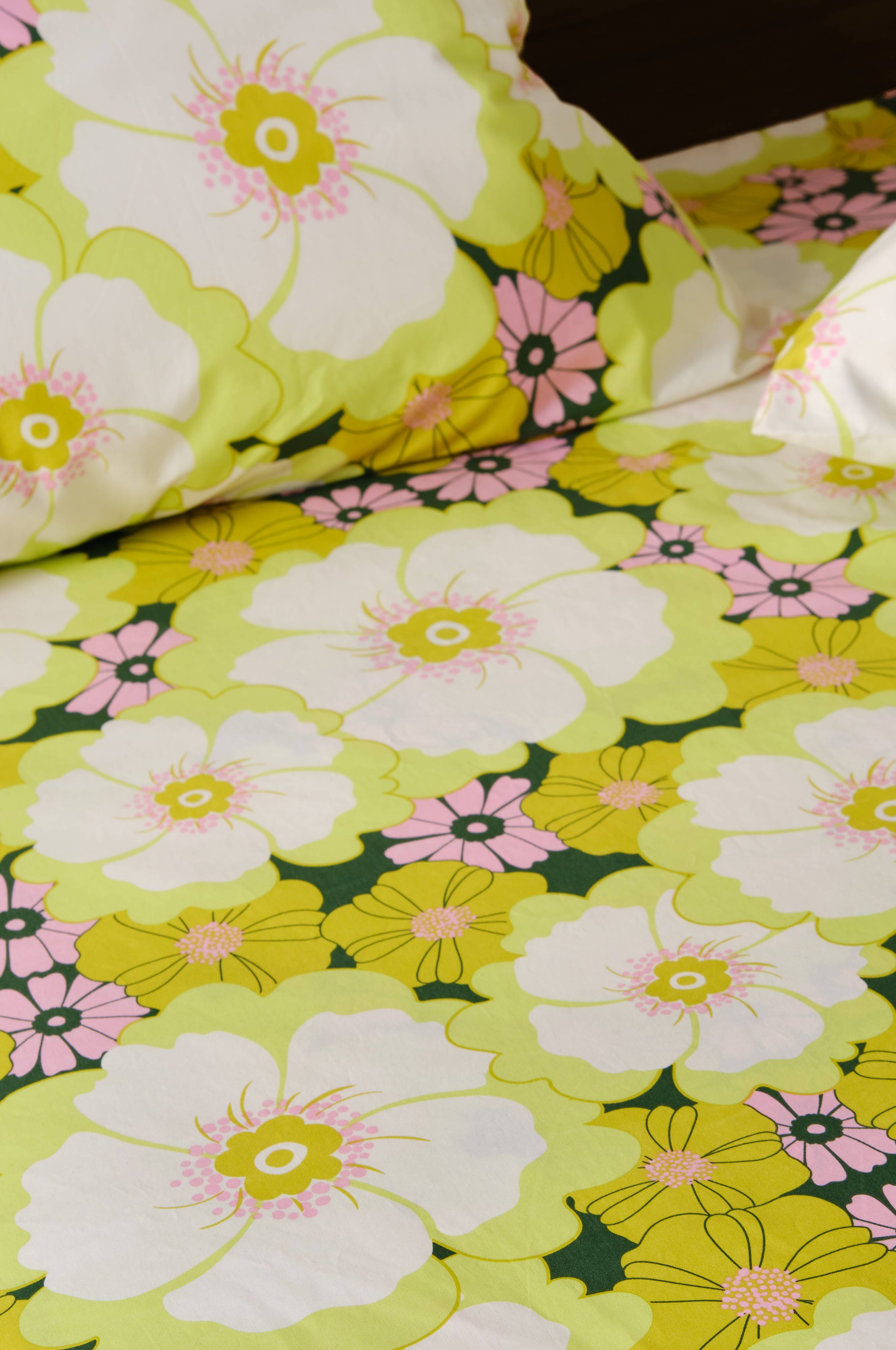 Sengetøyet FRIDA har et stilig retrotrykk av MARIA CARLBERG. En del av FRIDA-kolleksjonen, og du kan enkelt matche det med andre elementer for en sammenhengende og levende innredning.