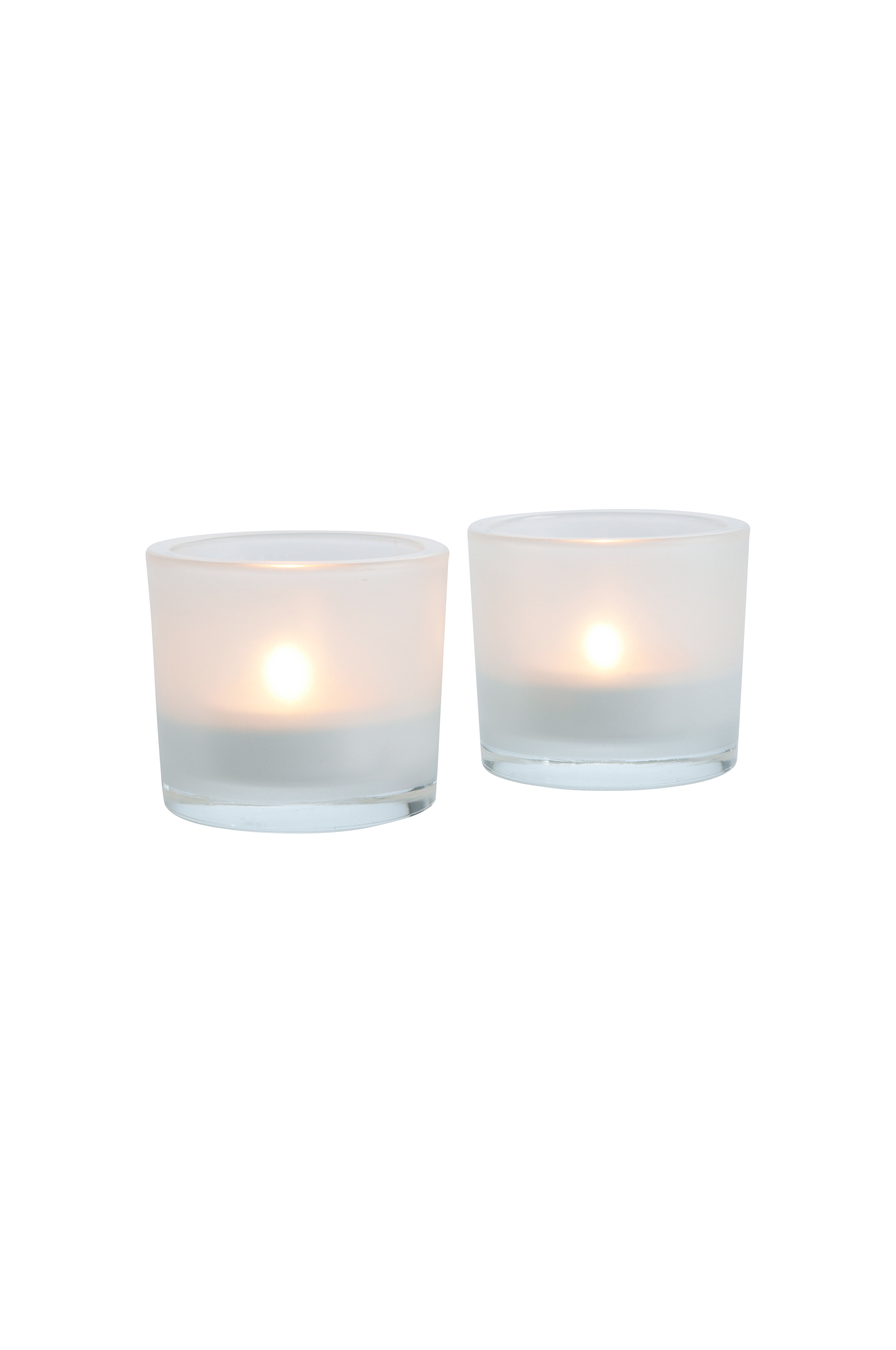Beskrivelse: 2-pk telysholdere av frostet glass.