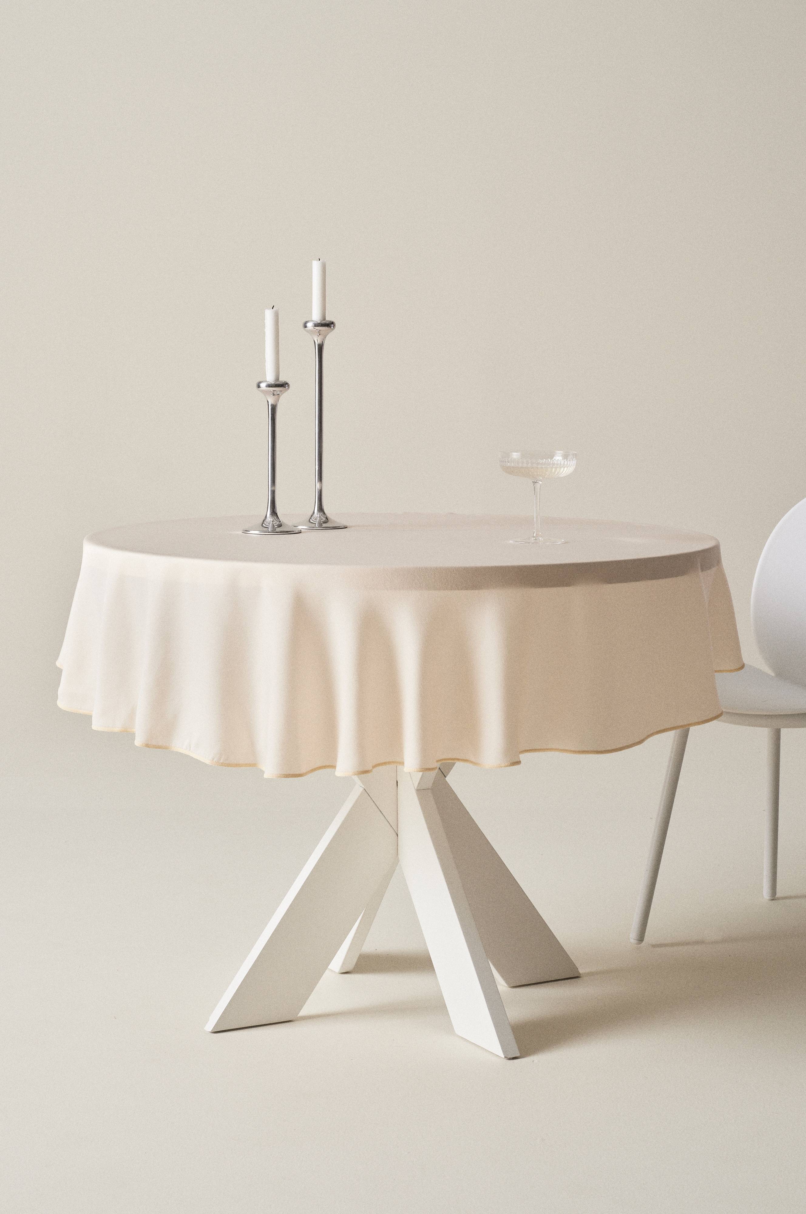 Rund duk av ensfarget polyester i en myk kvalitet med fint fall og flott glans. Kanten har overlocksøm rundt som forsterker dukens smidighet og fine fall. GEMMA finnes i flere farger som alle gir det dekkede bordet herlig fokus.