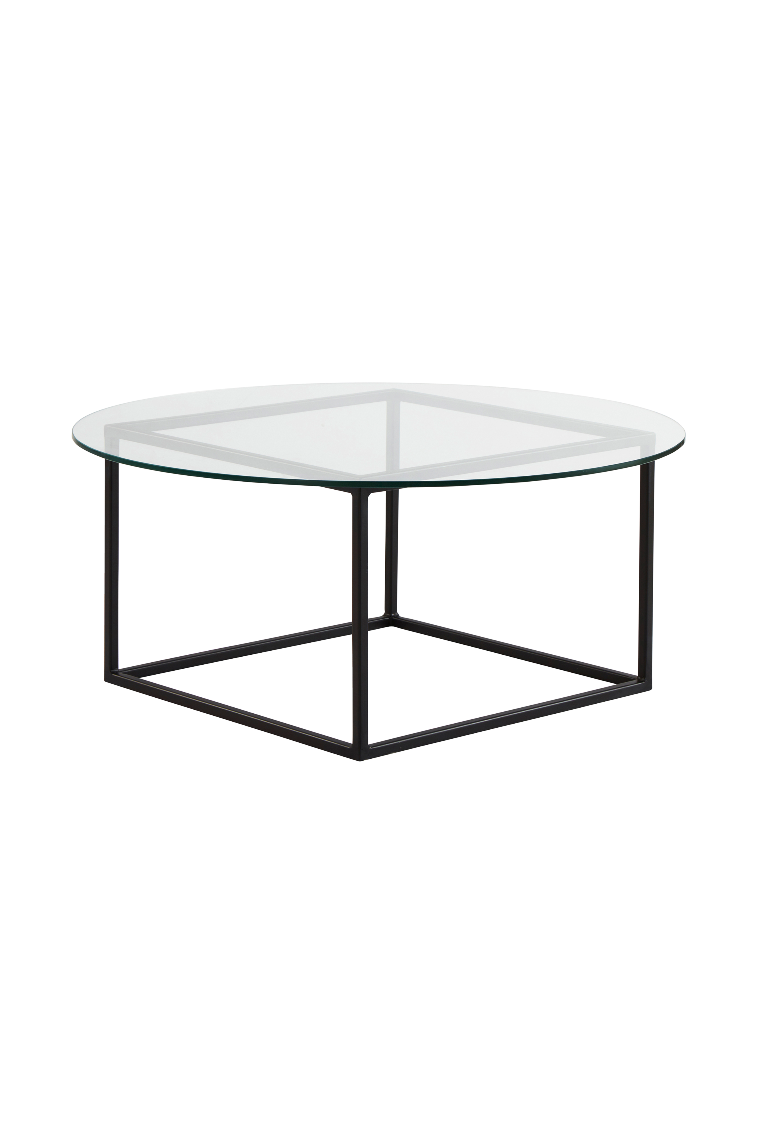 Rundt sofabord med bordplate av klart glass og understell av jern. Bordet gir en sofistikert følelse med en spennende materialblanding i nedtonet stil. Noe montering kreves.