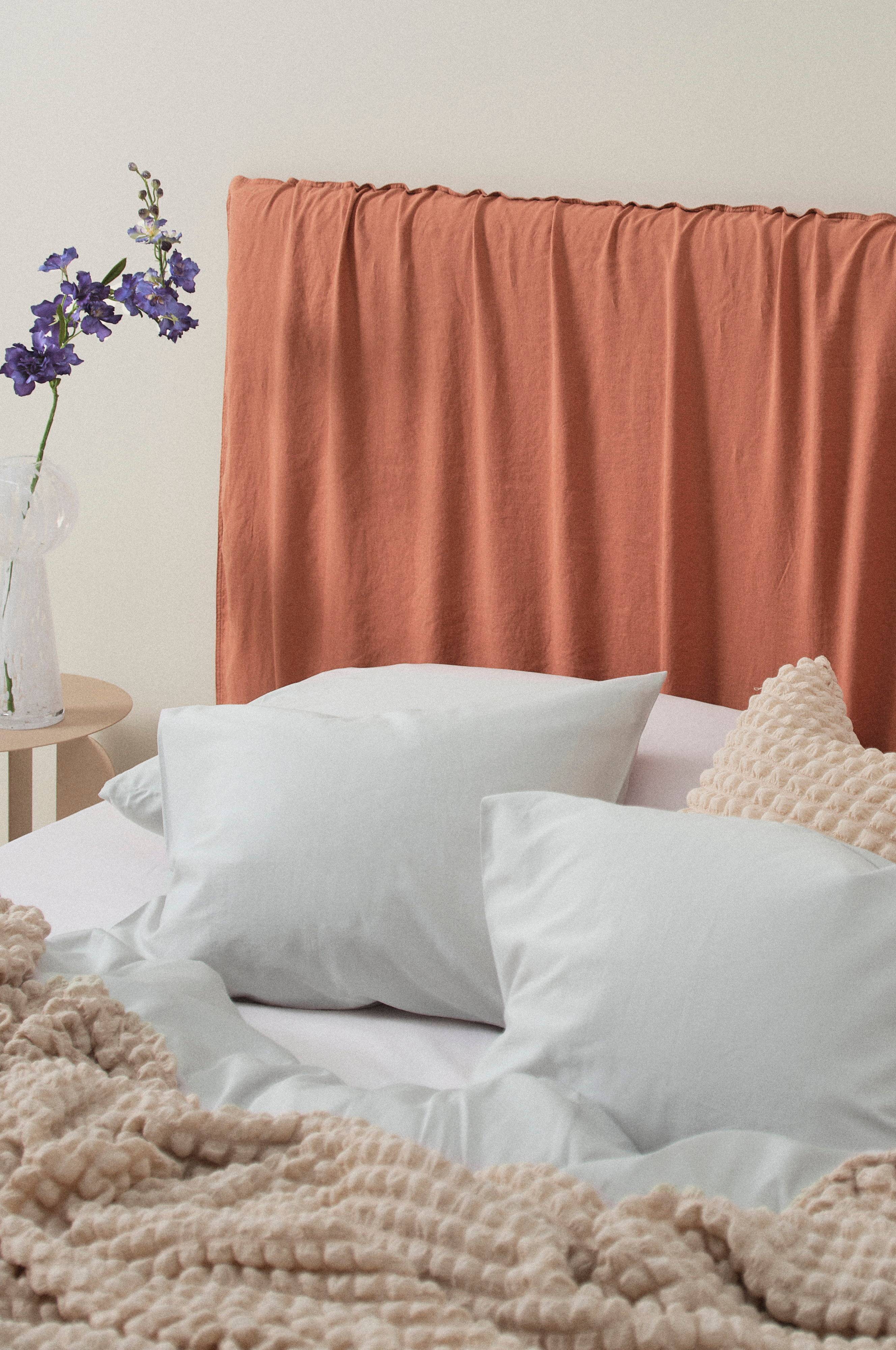 Trekk i behagelig, vasket kvalitet til sengegavl. Hamp og lyocell er kombinert til et stoff med matt overflate og herlig linfølelse. HANNAH er ensfarget i pene, litt dempede nyanser. Træ trekket over din sengegavl, og den blir som ny på et øyeblikk. Størrelsen er løs og ledig, og gir en avslappet følelse. Trekket er også lett å vaske. Stoffets gramvekt 130 g/m².