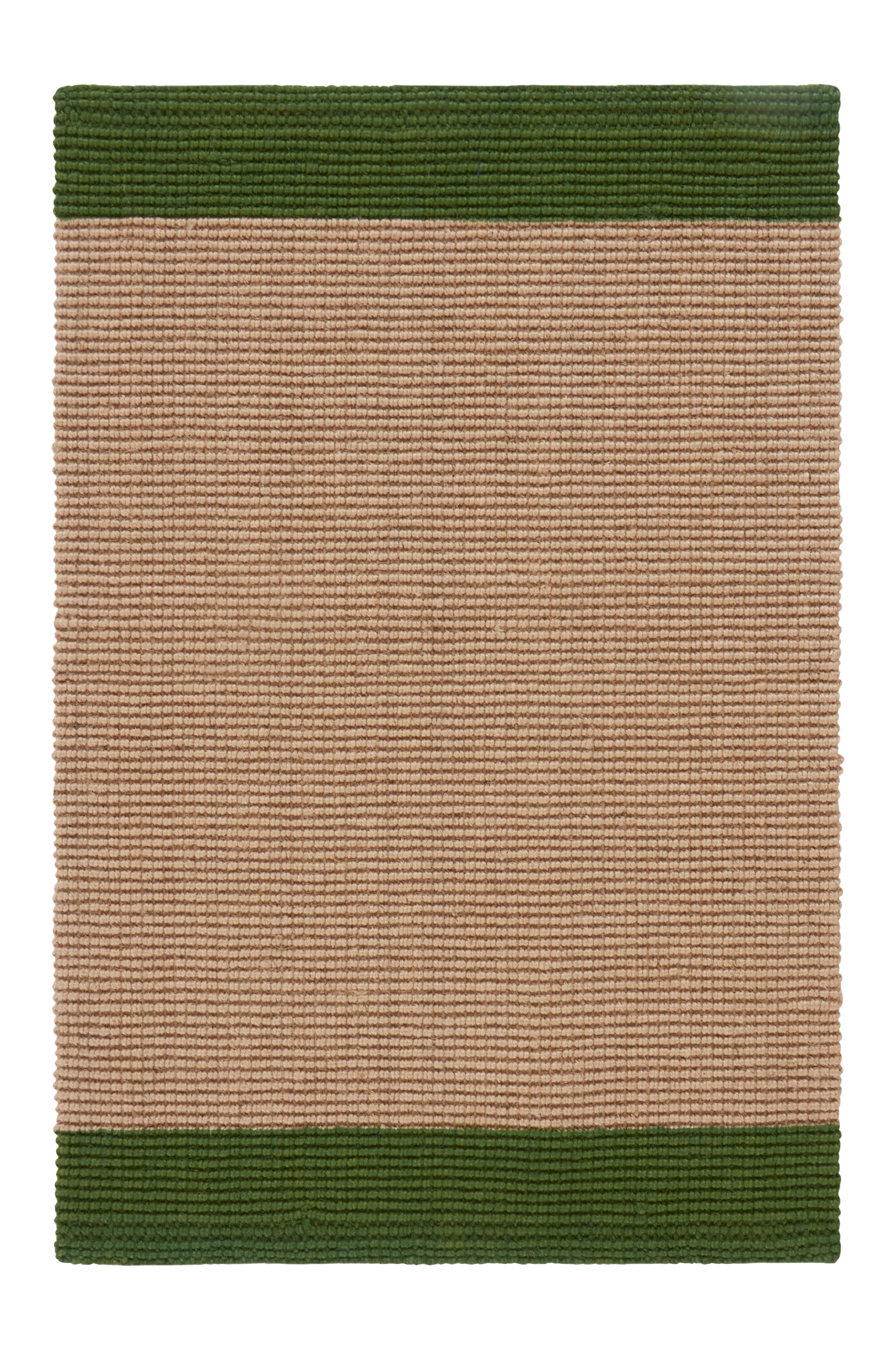 Dørmatte av jute med farget kant langs kortsidene. Teppets grunnfarge er naturlig jute, og teppet er ripsvevd. Jute er et naturlig og robust materiale som passer fint til dørmatter. Baksiden er lik som forsiden, ikke gummiert. Tykkelse 0,54 cm.