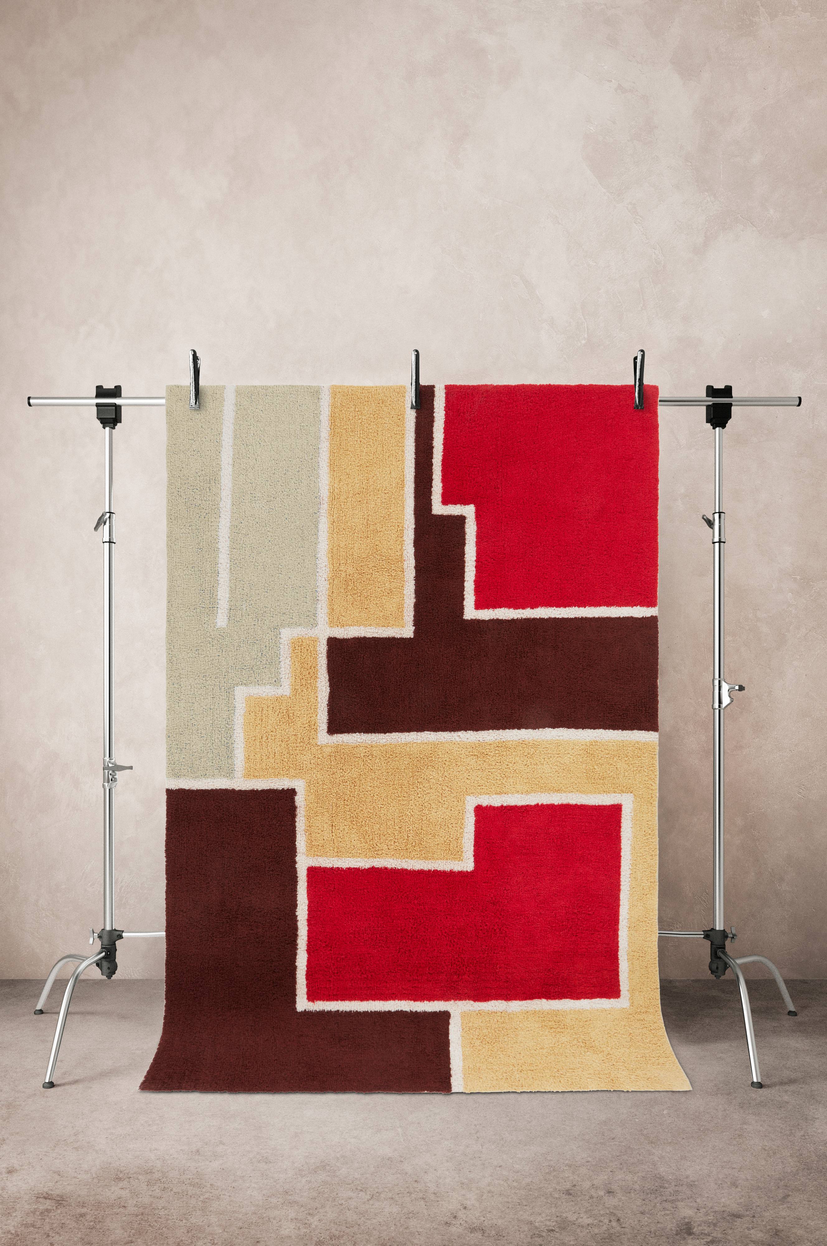 HAZEL er en tuftet bomullsteppe med asymmetrisk mønster som bygger på geometri med litt skjeve linjer og i herlige farger. HAZEL er et teppe som gjør deg glad, et lunt og mykt teppe som gir rommet en varm atmosfære. Lugghøyde 1 cm. Tykkelse 1,1 cm. 1400 g/m².
