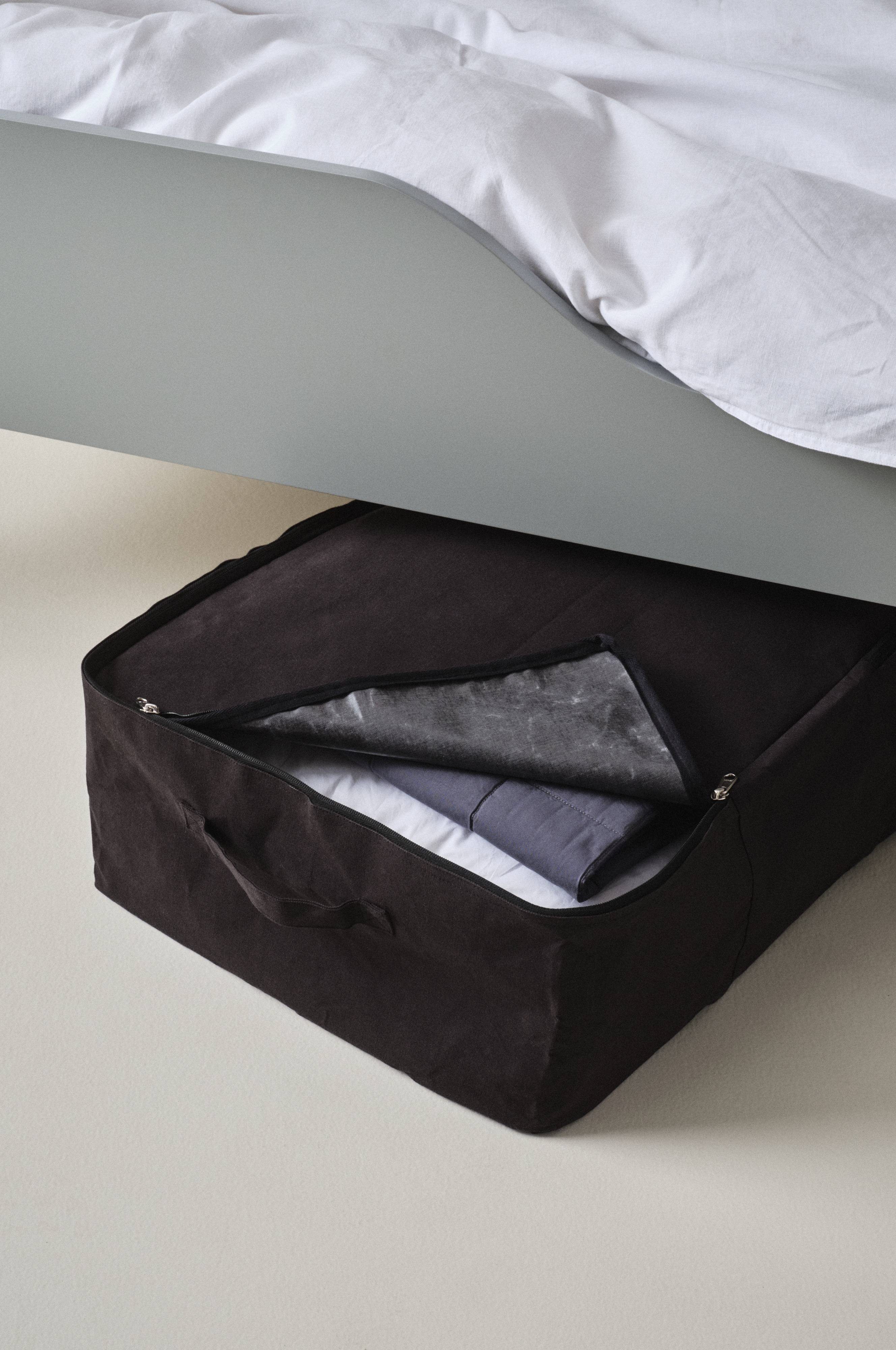 Sengeoppbevaring av bomull med beskyttende laminering av polypropylen. Den firkantede oppbevaringsboksen har glidelås øverst som gjør det enkelt å åpne opp og pakke. Du får dessuten god oversikt over innholdet. Har du dårlig plass, kan HIDING oppbevaringsboks være som skapt for å skyve under sengen - en eller flere. Høyde 20 cm.