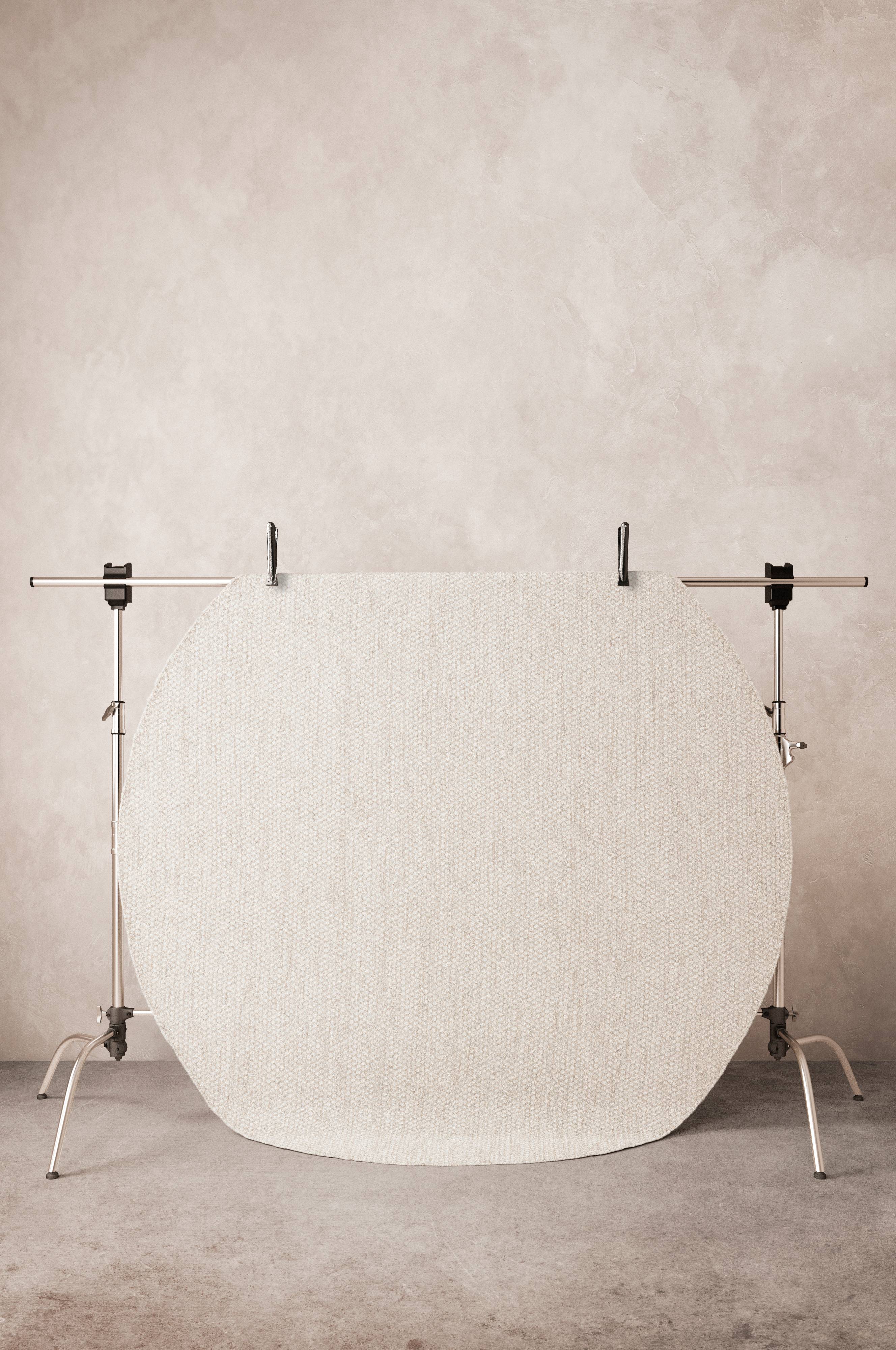 Håndtuftet teppe av garnfarget ull. Teppet er glattvevd med en litt grov følelse, og har en stilren design som passer inn i mange ulike stiler og trender. Tykkelse 0,9 cm.