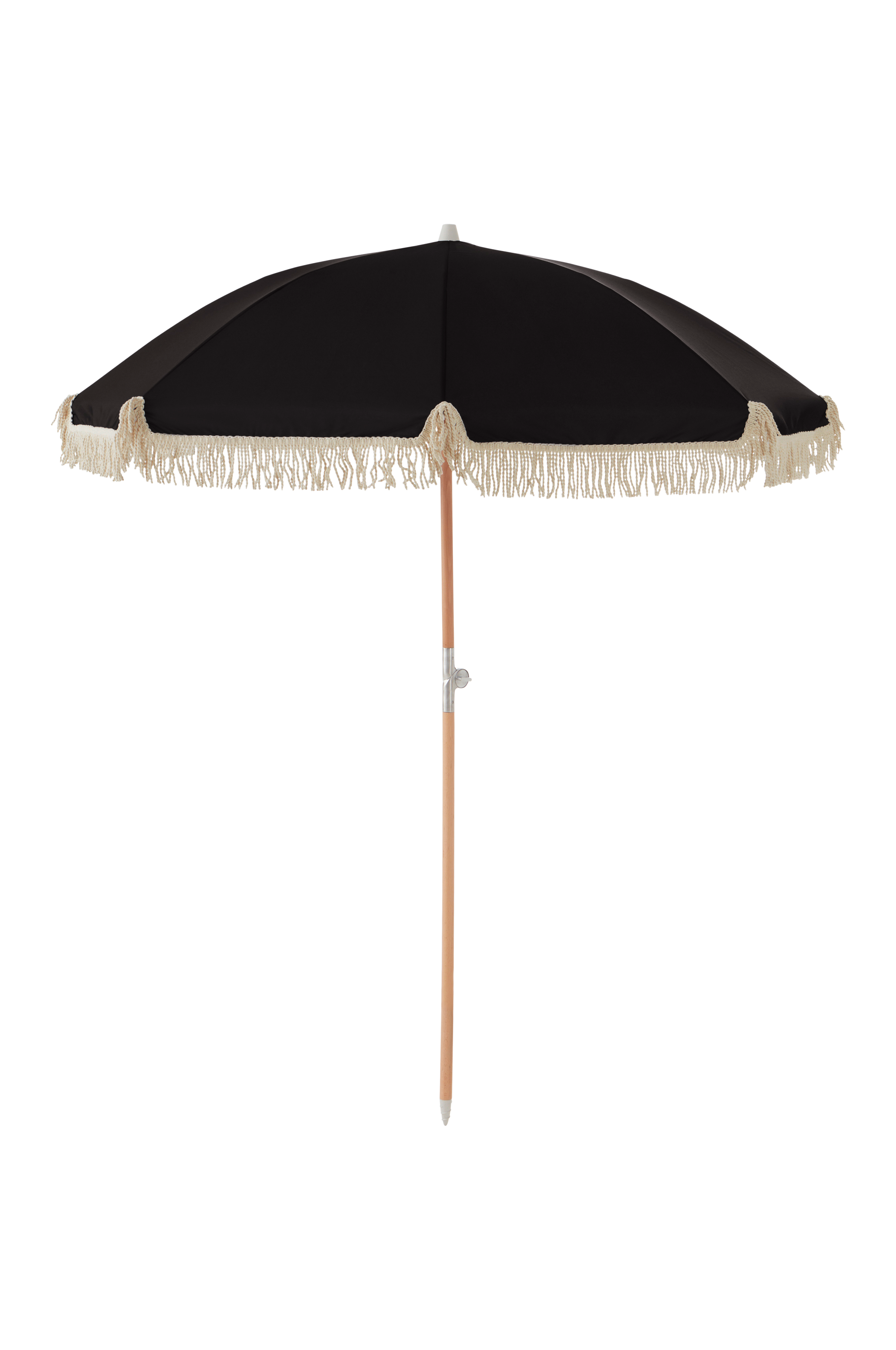 INDIO er en fin solparasoll av tre med vannavvisende stoff av polyester og frynser av polyester/bomull. Stangen, som er av tre, kan vippes på midten slik at skyggen faller på ønsket plass. Parasollskrue til å forankre produktet i bakken/sanden følger med. Oppbevaringspose med håndtak følger med. Parasollfot er ikke er inkludert, og kjøpes separat.