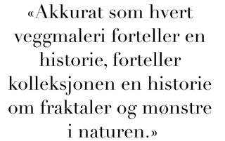 Maja har designstudio i Gathenhielmska Huset, en kulturminnesmerket bygning i Göteborg som ble bygd på midten av 1700-tallet. Forværelset er dekket av veggmalerier med figurer som representerer menneskets fem sanser. Akkurat som hvert veggmaleri forteller en historie, forteller kolleksjonen en historie om fraktaler og mønstre i naturen. Teppene Dardel og Rho er inspirerte av skjell – myke former, som støpt av havet. Cast og Pratos uregelmessige overflate minner om mønstrete steingulv. Tenutos tekstur gir følelsen av at noen har skåret ut små mønstre på en trestamme. Alle teppene er like tidløse og gjennomtenkte som de er moderne.