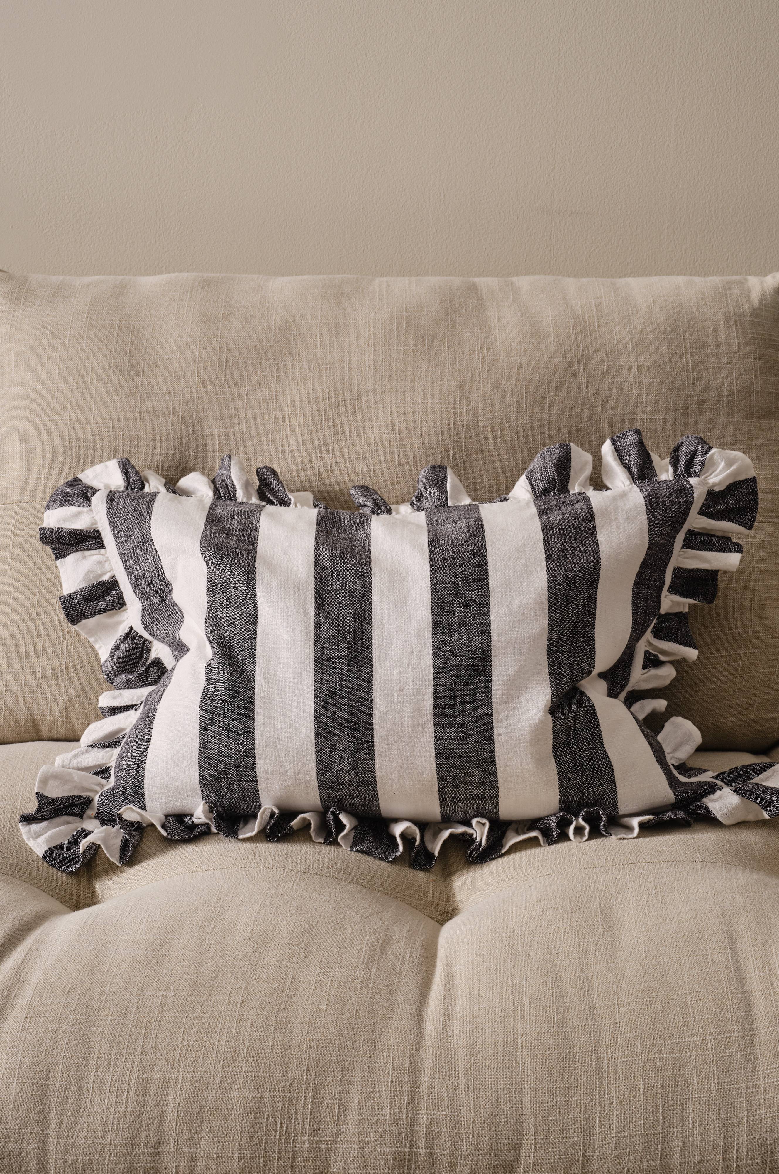 IRIS-putevaretrekket fremhever interiøret ditt med sin vintagefølelse og volangkant. Det er laget av bomullsstoff som gir en myk følelse, og har et garnfarget stripemønster som tilfører en tidløs sjarm til ethvert rom. Dette putetrekket er ideelt for deg som er ute etter trendy design, og tilbyr både stil og tekstur.